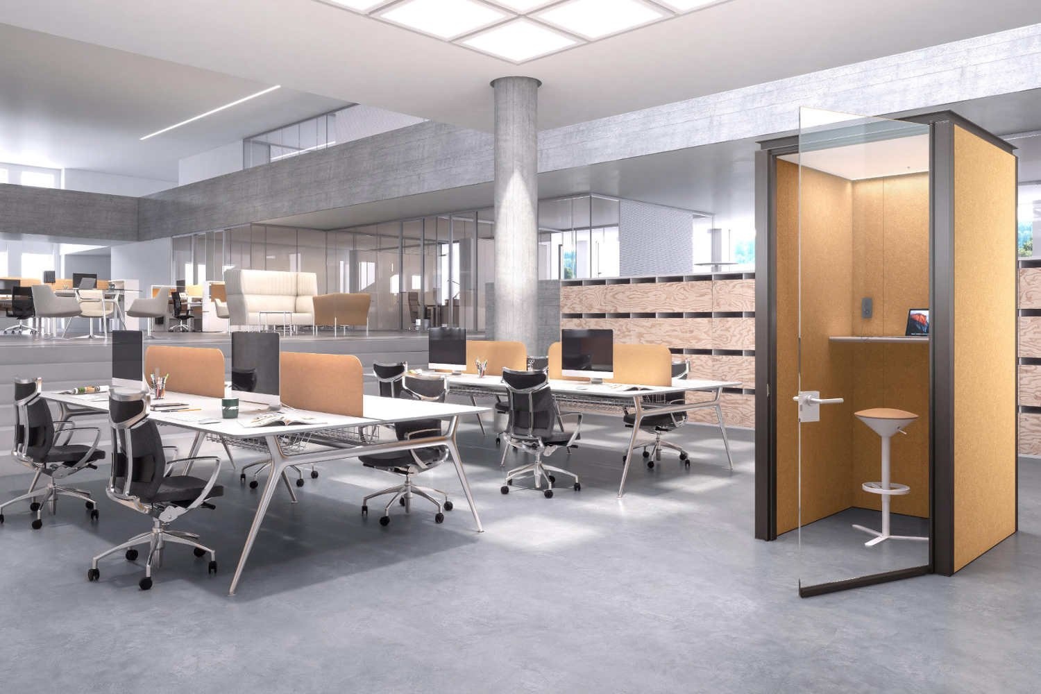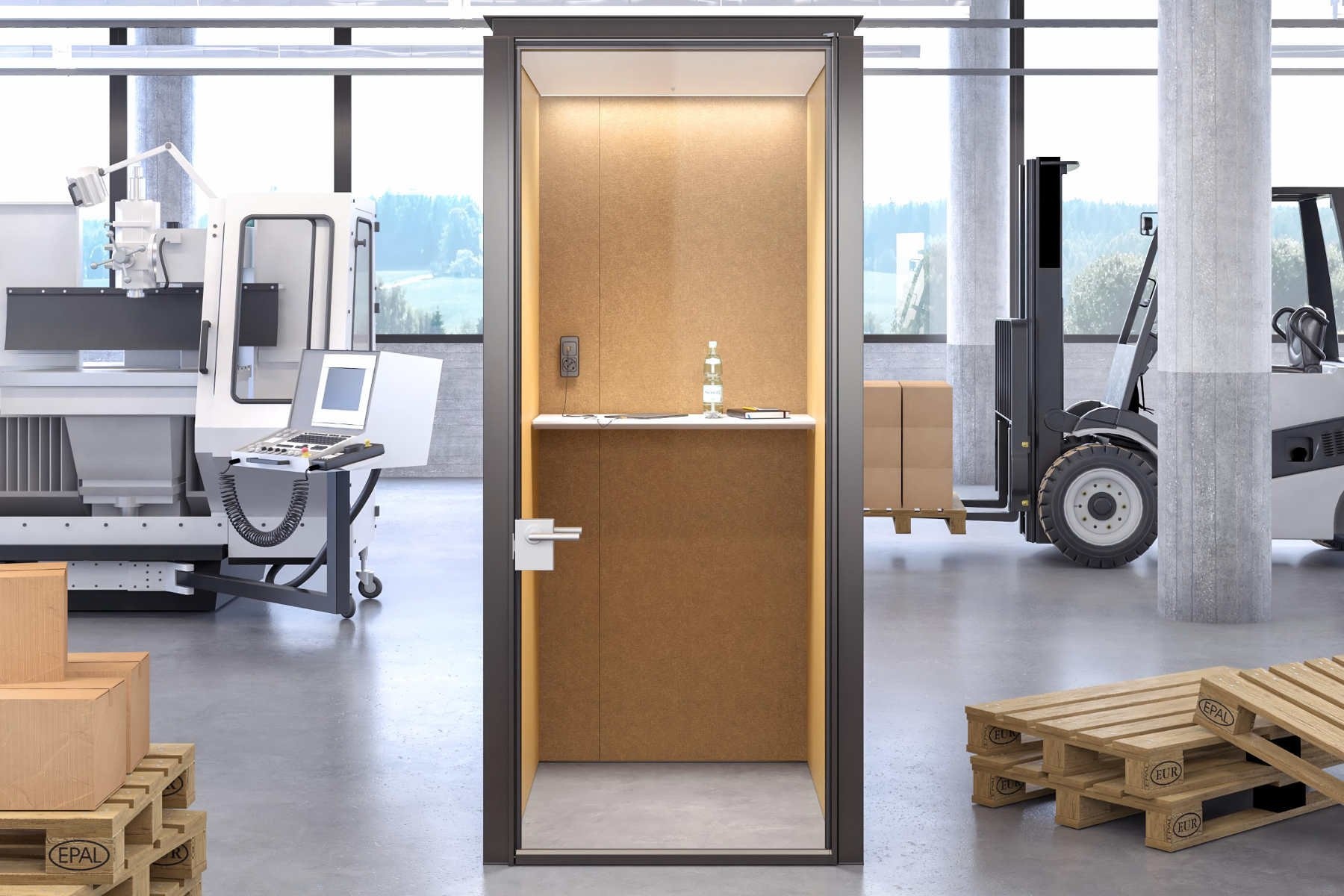 Eventueel kan er een werkblad toegevoegd worden in de cel, waar u een laptop op kunt zetten en zo geconcentreerd kan werken. Bij dit blad kan ook elektrificatie aangesloten worden, indien dat wenst.