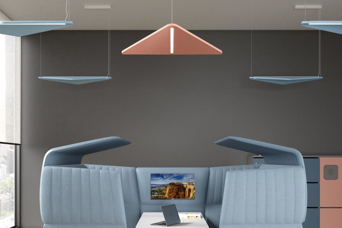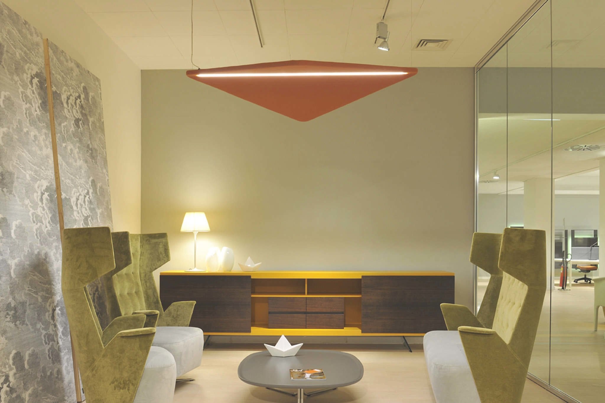 De akoestische verlichting van de Estel Kite biedt 2 oplossingen in 1 product; het geeft licht en werkt geluiddempend.