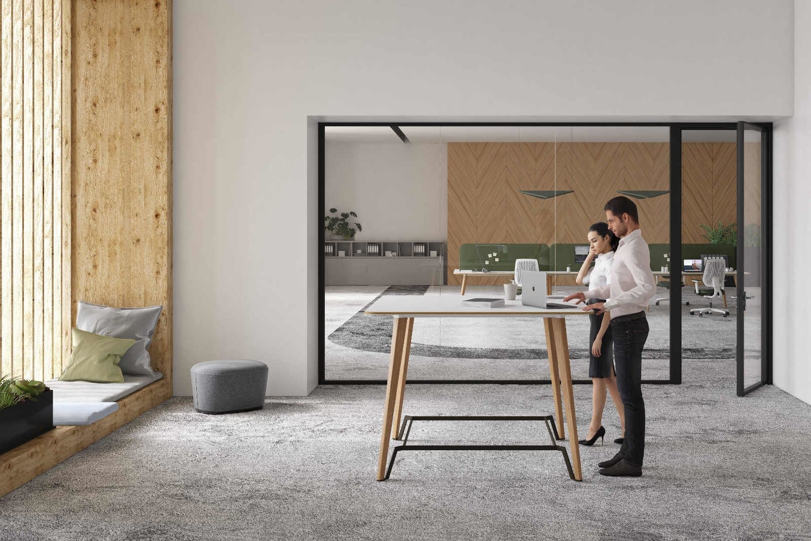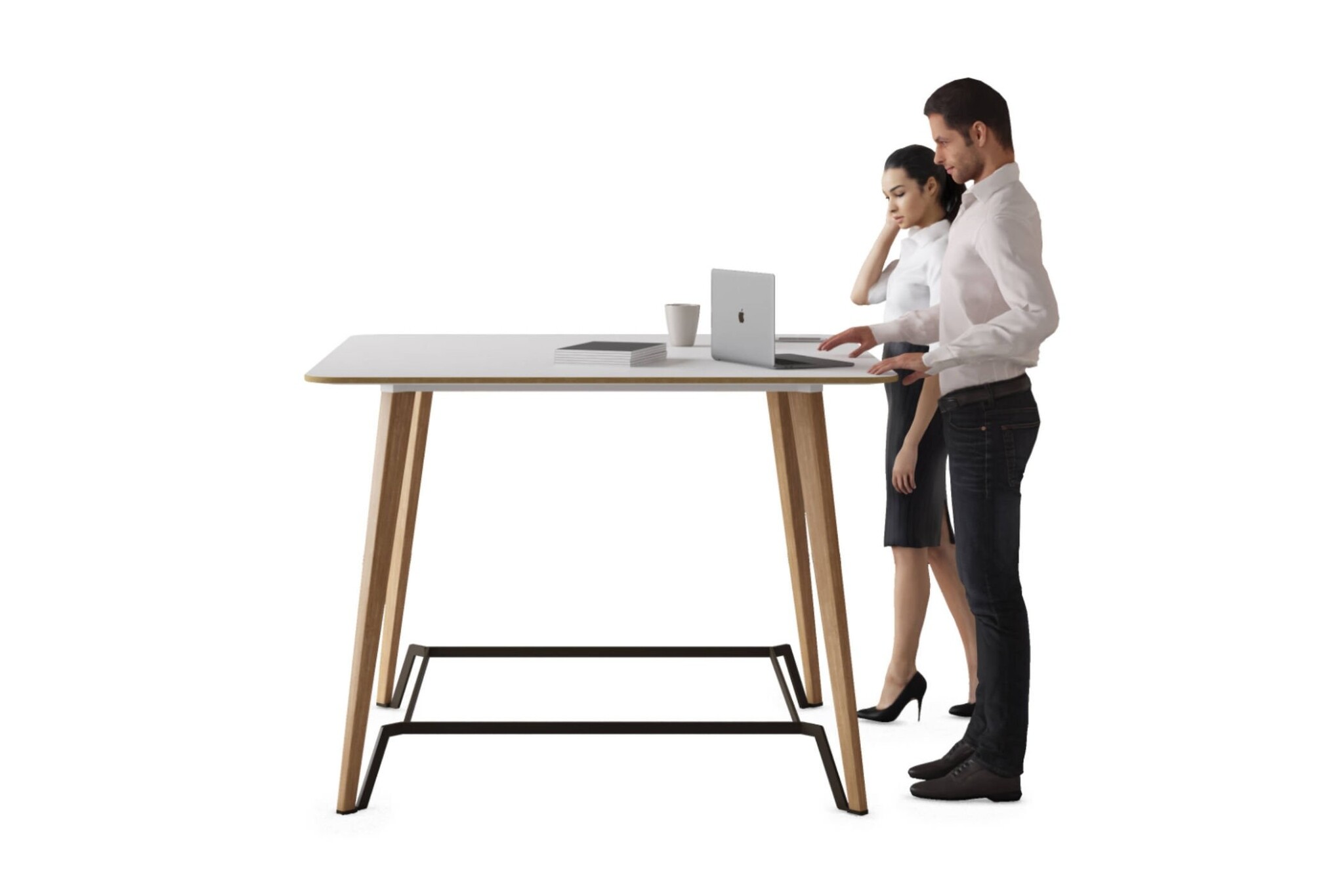 Het onderstel betreft een eikenhouten vierpoot, dat is waar de P45 serie ook om bekend staat. Echter is het prettig om bij een staande meeting af en toe de voeten wat te laten rusten. Daarom kan de tafel ook uitgebreid worden met een voetensteun.