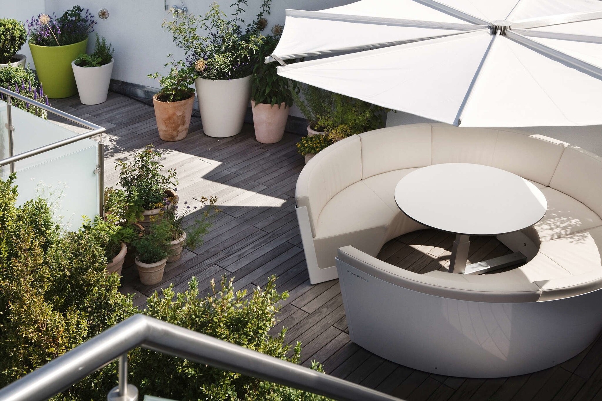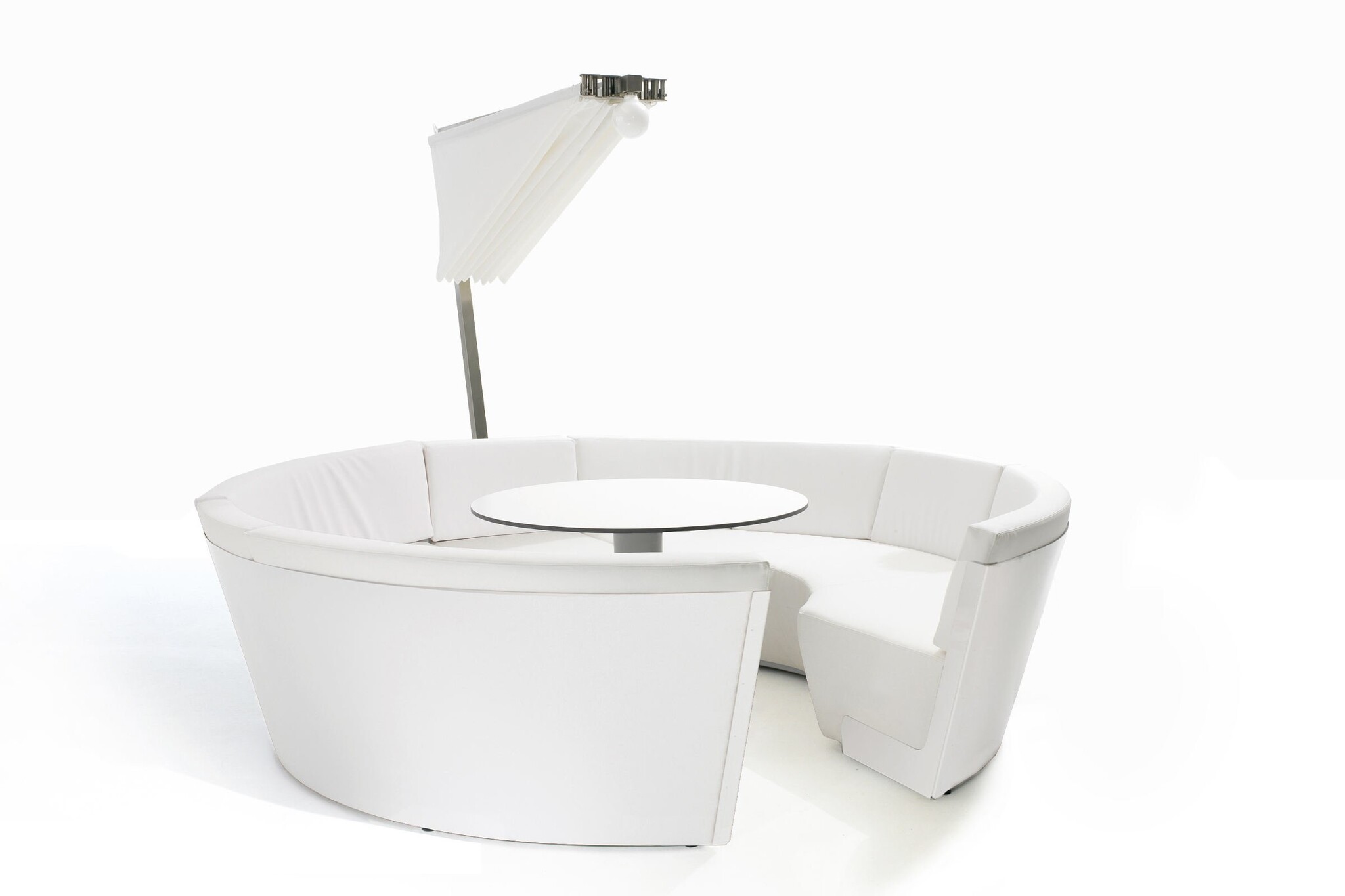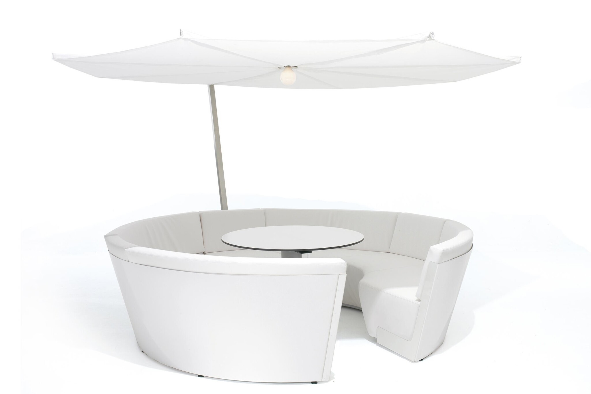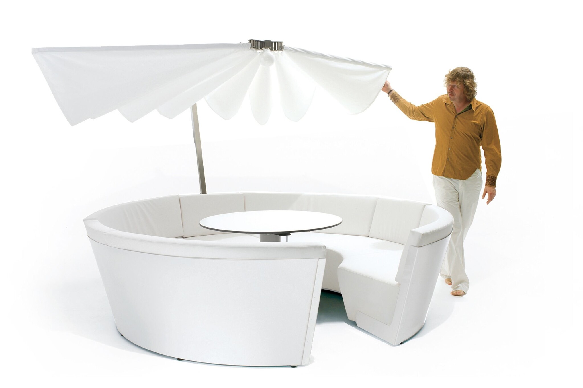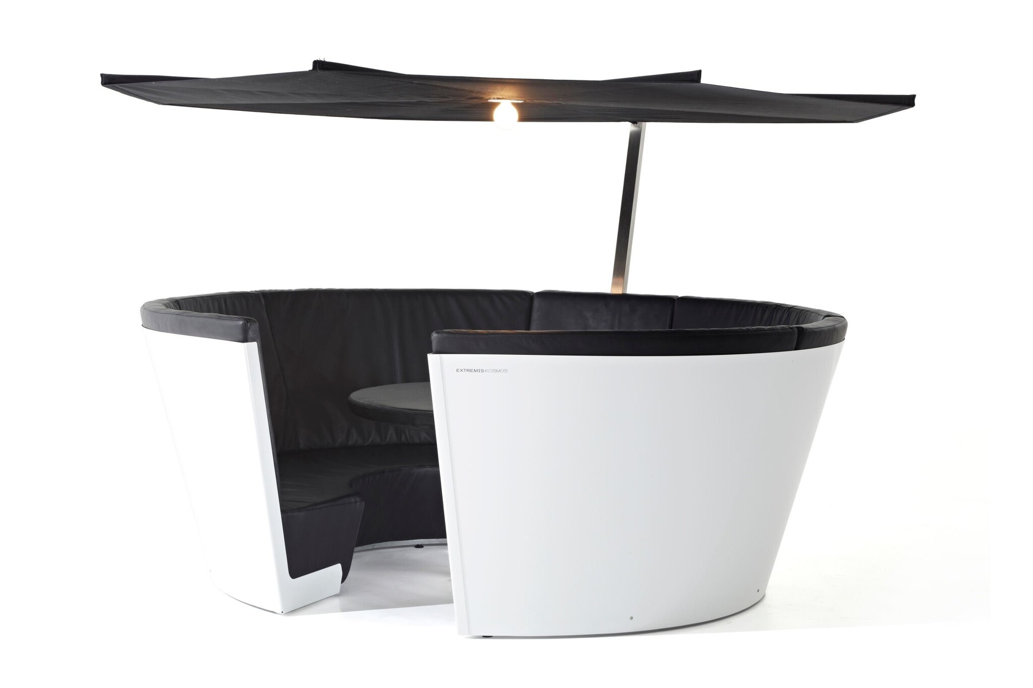 De Extremis Kosmos is een bank voor binnen en buiten en heeft een lichtgewicht aluminium frame en synthetisch leren kussens. De Kosmos is een combinatie van een bank met een tafel, die eenvoudig tot een ligbed gemaakt kan worden, zoals ook in het filmpje te zien is. Accessoires, zoals een parasol, zijn ook leverbaar. De ontwerper van de Kosmos, Dirk Wynants, is naast ontwerper ook een fervent zeiler en deze Kosmos heeft dezelfde uitstraling die je hebt op een zeilboot. Over Extremis Extremis design meubilair heeft een lange technische levensduur in combinatie met een tijdloze vormgeving. Extremis buitenmeubilair is ontworpen om minstens 15 jaar mee te gaan. Het aluminium wat wordt gebruikt is geanodiseerd. Dit versterkt de oxidatielaag.