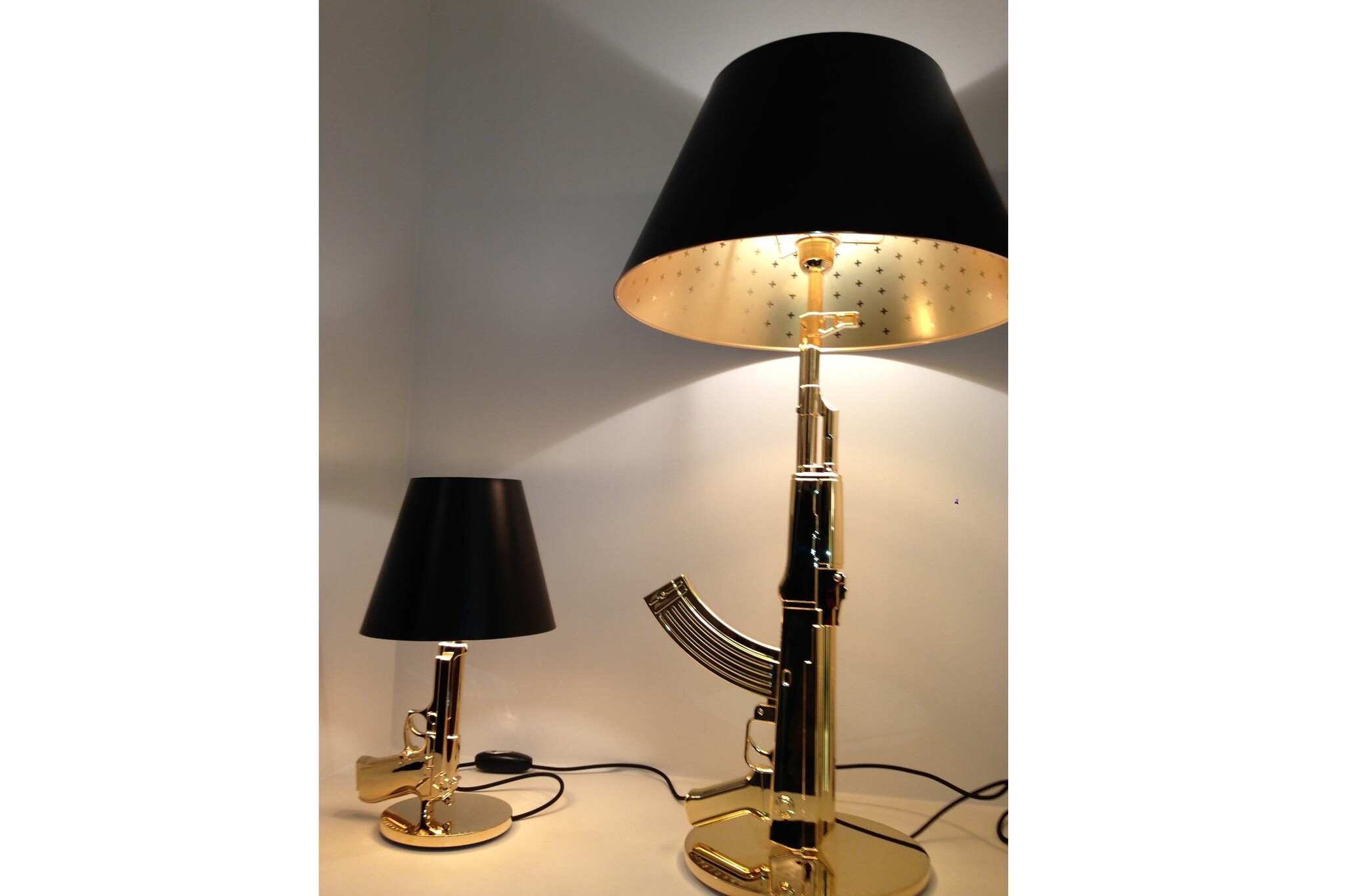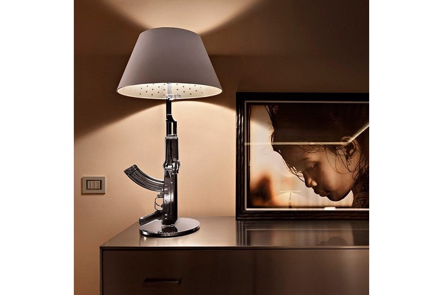 De Flos Gun is er als tafellamp en als vloerlamp. Voor een stoere touch in uw ruimte! Een deel van de opbrengst gaat naar Warchild.