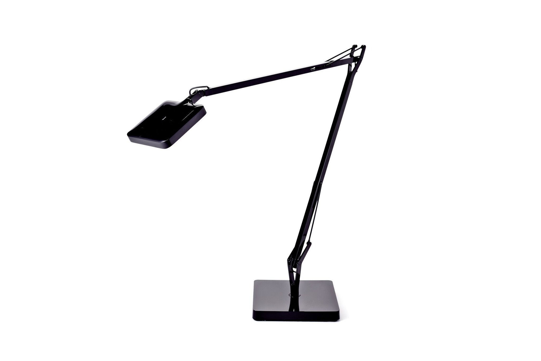 Flos Kelvin Led een bescheiden tafellamp ontwerp. Gebruiksgemak, ontwerp, design en functionaliteit kenmerken de Kelvin Led verlichting. De lamp dompelt het bureau in een gelijkmatig en niet verblindend licht en zorg daarmee voor een perfecte lichtoplossing voor prettig werken. Door de klassieke, dubbel verstelbare pantograafarm kan de lichtbron worden afgesteld. De lamp is leverbaar in glanzend zwart, glanzend wit of in een mat grijzen variant. De voet en zwenkarm zijn gemaakt van aluminium en perfect afgewerkt.