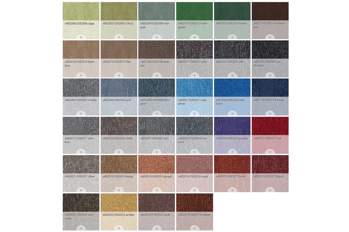 Aanlevering: rol 2 meter, tegels 50 x 50 cm en leverbaar in 34 kleuren.