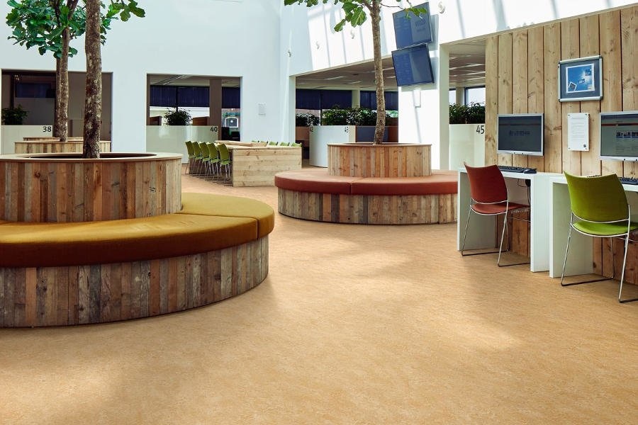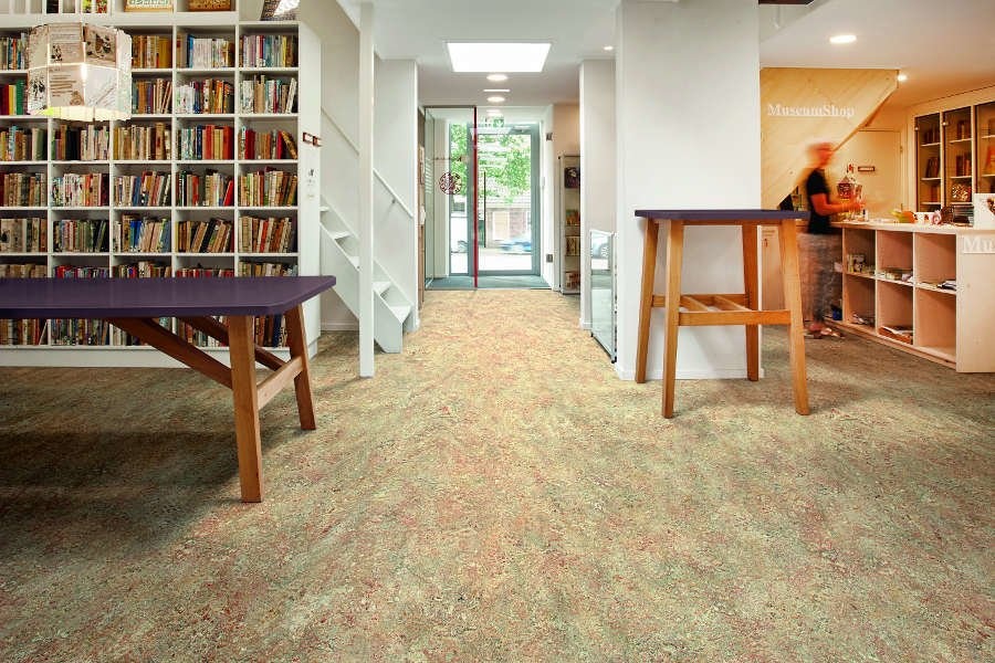 De Forbo Marmoleum Marbled linoleum vloer is een zeer geschikte vloerkeuze voor een grote diversiteit aan toepassingen, zoals kantoorinrichting, gezondheidszorg, scholen, horeca, winkels et cetera.