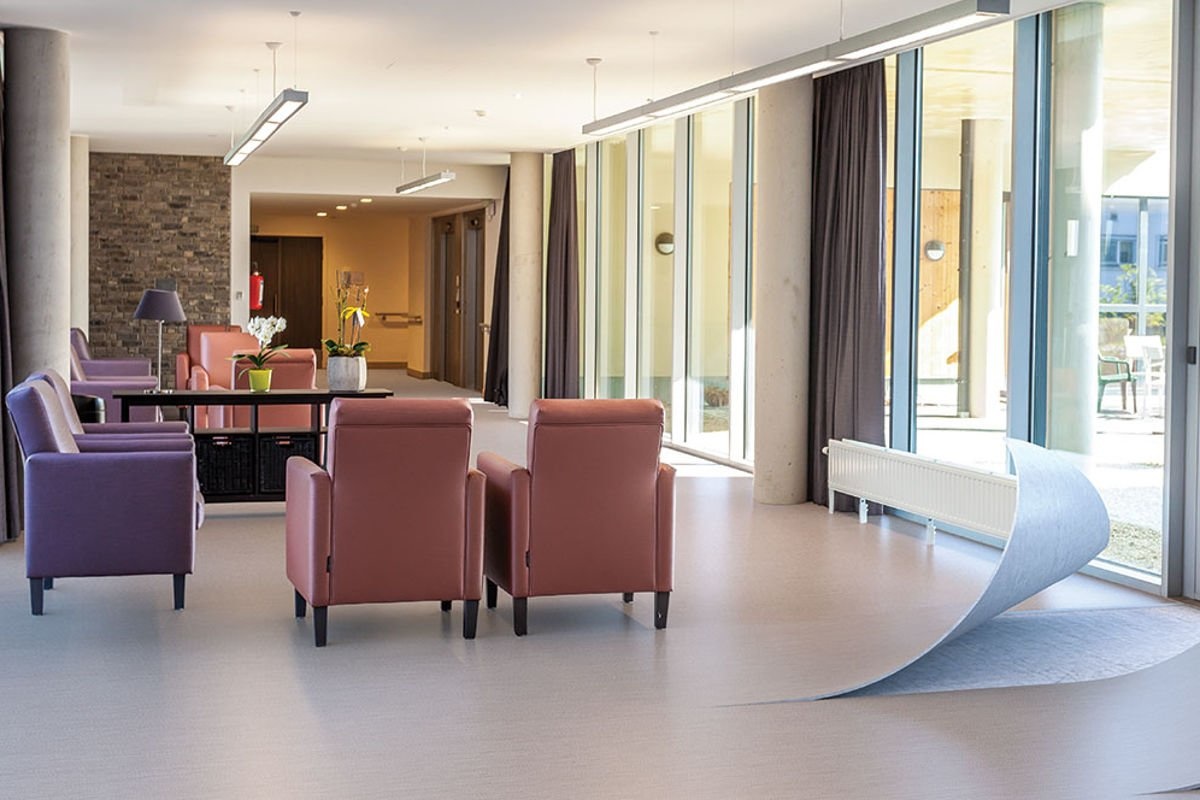 Hygiënische vloer doordat Modul Up eenvoudig schoon te maken is en bestand is tegen chemische en agressieve schoonmaakmiddelen.