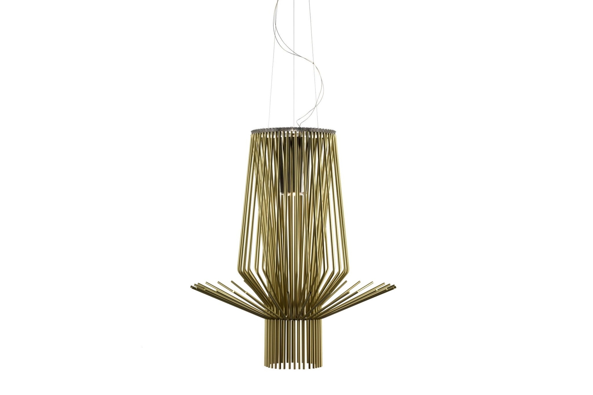 Deze apart vormgegeven hanglampen | plafondlampen zijn gemaakt van aluminium en gelakt staal. De Allegretto van Foscarini is verkrijgbaar in drie versies met verschillende kleuren: Allegretto ritmico in zwart, Allegretto vivace in bruin en Allegretto assai in goud.Allegretto interpreteert de prachtige theatrale van het Allegro project met grote proporties en volumes, maar dan ontworpen op een kleinere schaal.Afmetingen van de Foscarini Allegretto lampen