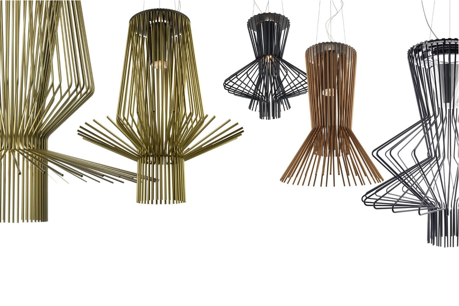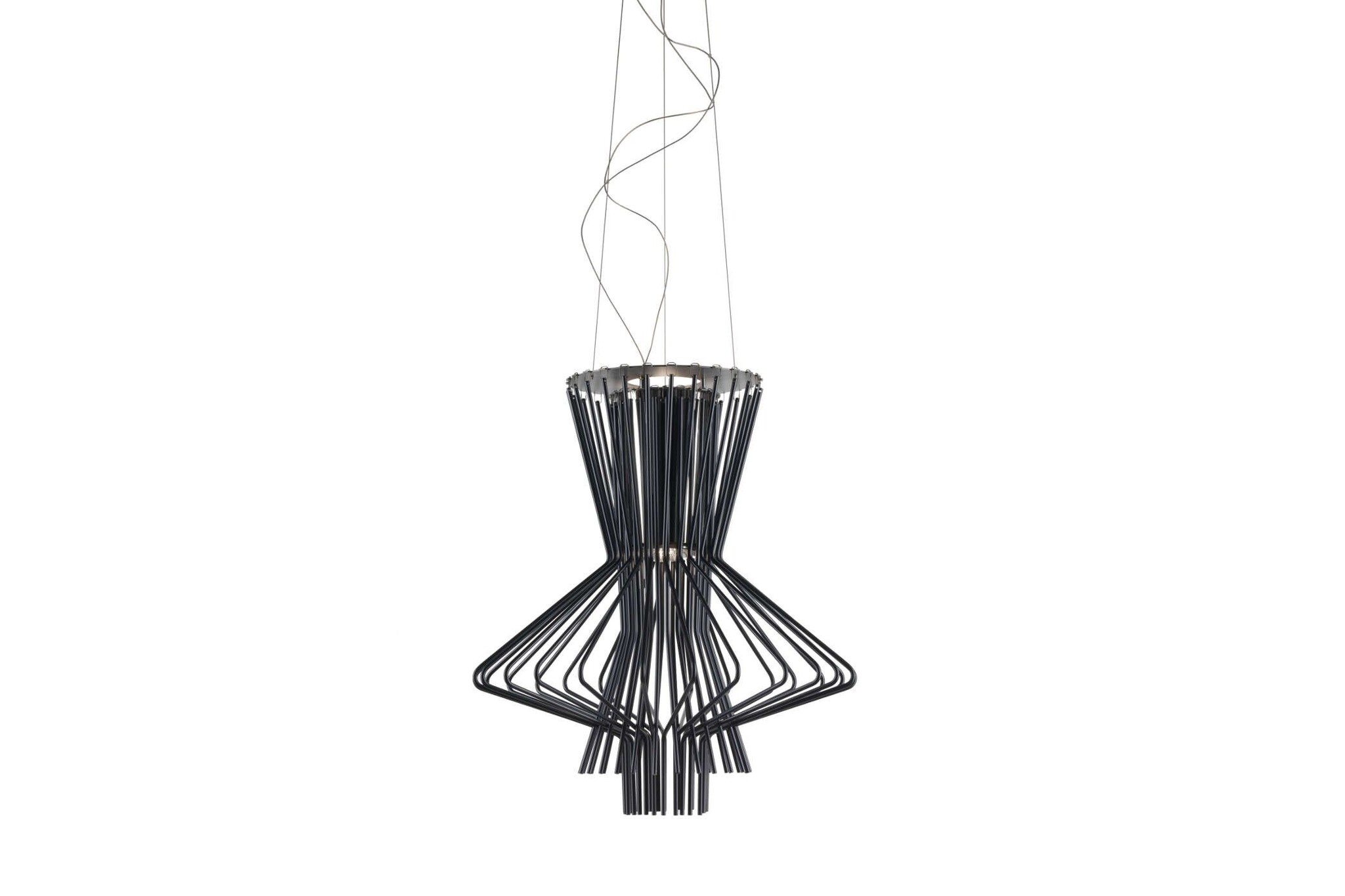 Deze apart vormgegeven hanglampen | plafondlampen zijn gemaakt van aluminium en gelakt staal. De Allegretto van Foscarini is verkrijgbaar in drie versies met verschillende kleuren: Allegretto ritmico in zwart, Allegretto vivace in bruin en Allegretto assai in goud.Allegretto interpreteert de prachtige theatrale van het Allegro project met grote proporties en volumes, maar dan ontworpen op een kleinere schaal.