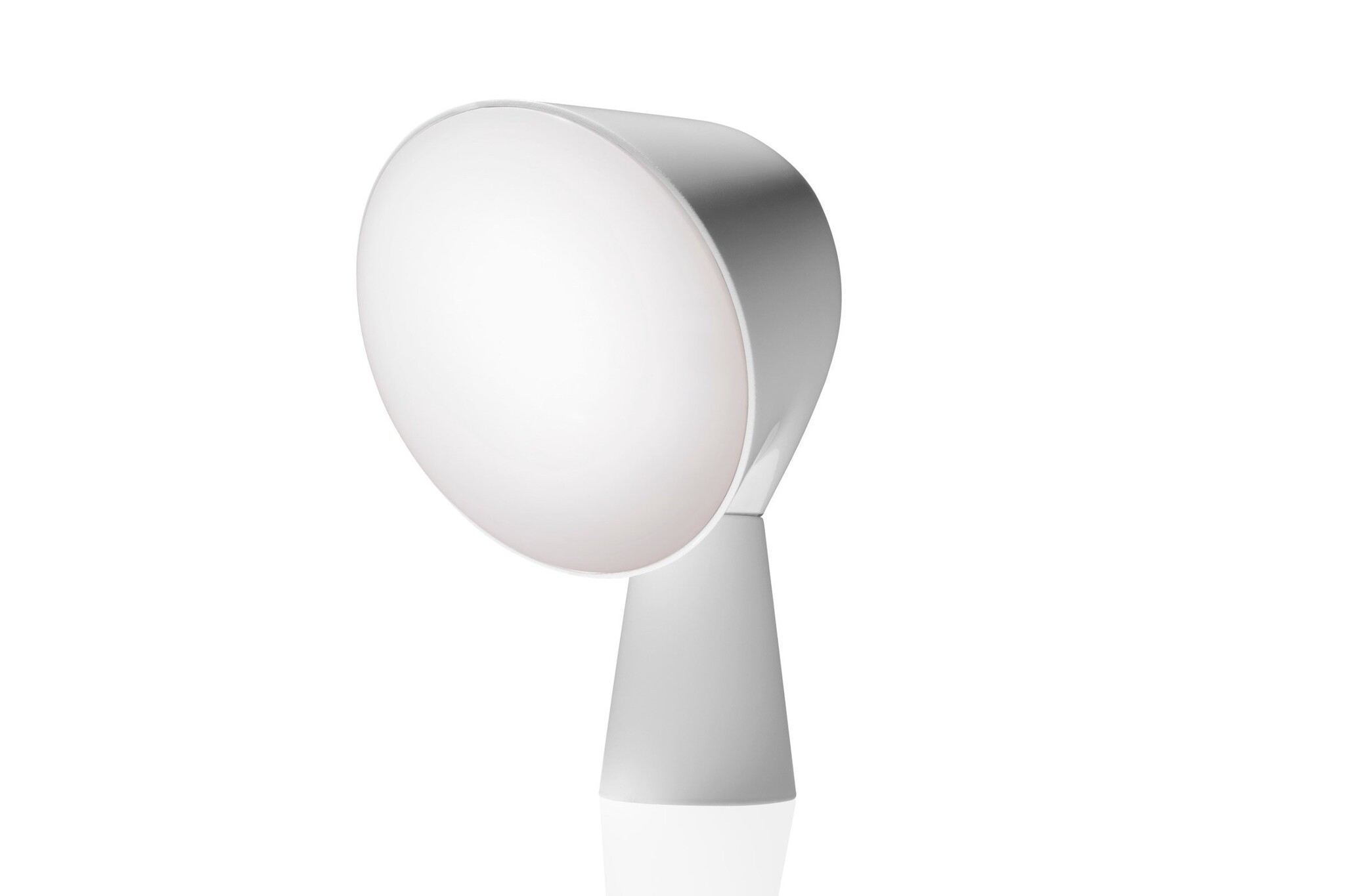 Foscarini Binic een kleine tafellamp. Door de vorm en hoogte is de Binic een karakteristieke lamp. n leggen op persoonlijke spullen. De Binic is leverbaar in zes verschillende kleuren: wit, roze, lichtblauw|aqua, blauw, geel en antraciet. Door de kleine vorm kan de Binic in verschillende ruimtes geplaatst worden van kantoor tot woonkamer.Voor de verlichting zijn moderne materialen zoals polycarbonaat en ABC-kunststoffen gebruikt. De kap heeft een hoogglanzende uitvoering, de sokkel is gematteerd wat zorgt voor een stemmig samenspel.