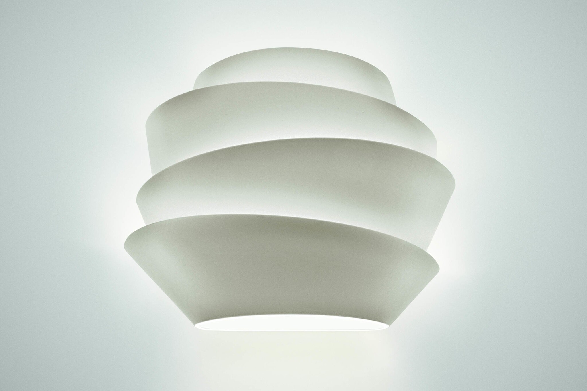 Foscarini Le Soleil een plafondlamp gemaakt van polycarbonaat. Le Soleil bestaat uit asymmetrische banden, die een leidende rol spelen in de verspreiding van het licht. De Le Soleil, verlichting, is leverbaar in wit. Naast de hanglamp is er ook een wandlamp leverbaar ook in de kleur wit.