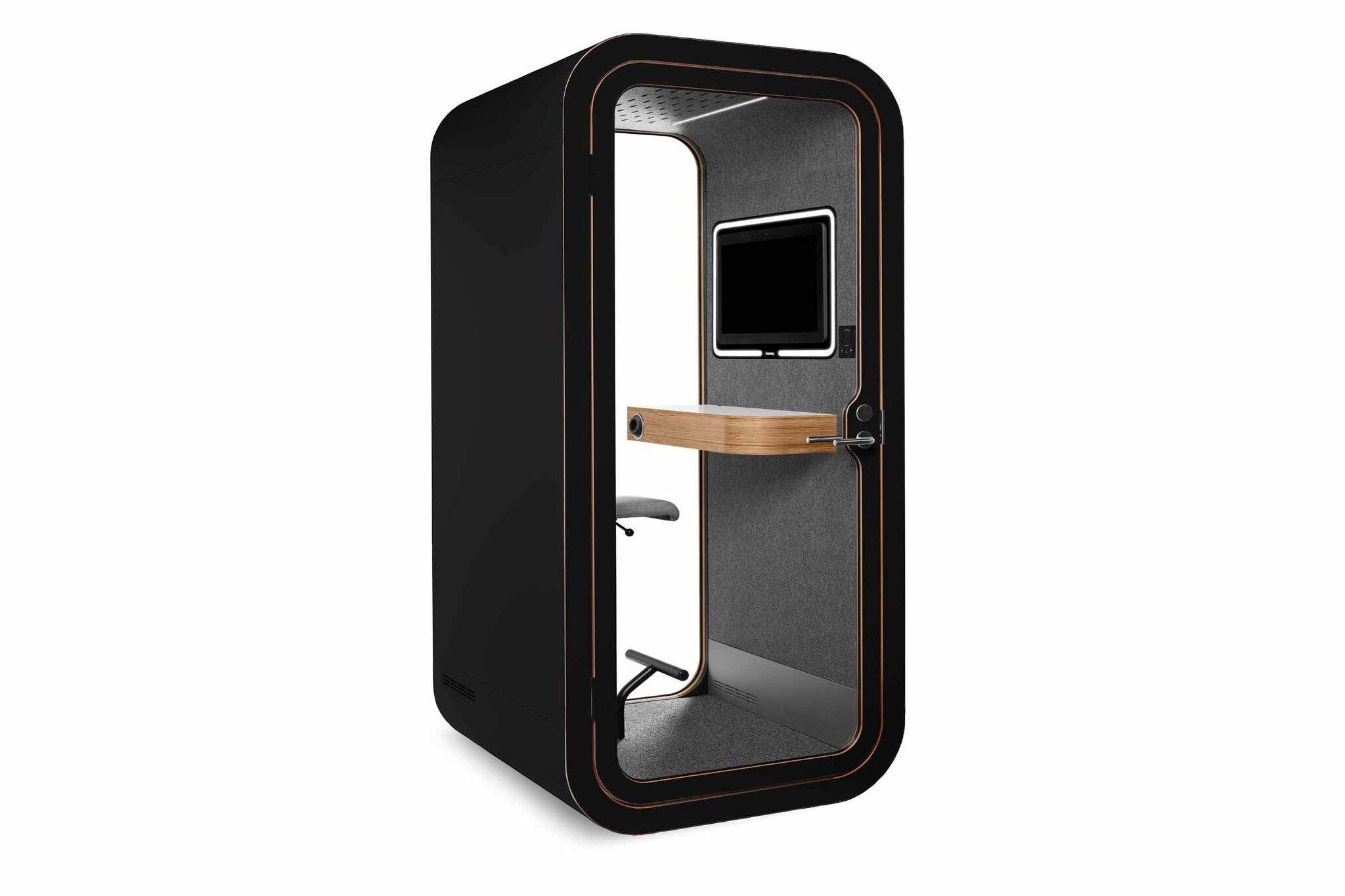 De Framery O akoestische belcel is perfect voor het maken van belangrijke telefoongesprekken of om deel te nemen aan videoconferenties. Gesprekken voeren zonder uw collega's te storen? De Framery O levert een echovrije en comfortabele werkomgeving. De installatie van de akoestische belcel is snel en het product is klaar om te worden gebruikt op dezelfde dag dat het product wordt afgeleverd. Je kunt dus meteen beginnen met ongestoord bellen! Alle materialen zijn zorgvuldig geselecteerd om de geluidsisolatie zo effectief mogelijk te maken. Hoe luidruchtig het kantoor ook is, de Framery O belcel geeft je een plek om je te concentreren of een gesprek te voeren zonder dat je andere tot last bent. Goede akoestiek op kantoor is tegenwoordig een must.Kenmerken van de Framery O phone booth