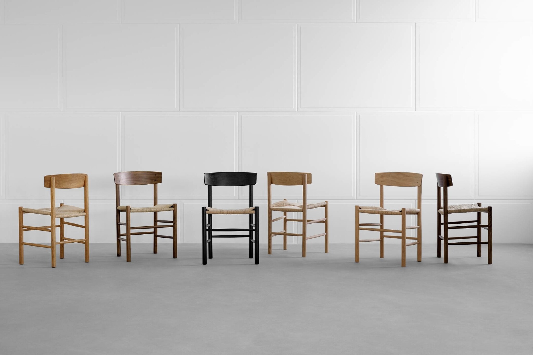 De Fredericia J39 stoel is ontworpen door Børge Mogensen in 1947. J39 is een veelzijdig meesterwerk gemaakt van massief hout, met een handgeweven zitting van papierkoord in twee verschillende kleuren. Dat is met recht een klassieker te noemen van een bekende designer. Dit soort stoelen zijn meteen herkenbaar als horecastoelen. In een café, maar ook in bedrijfskantine, hotel of restaurant passen deze J39 stoelen van Fredericia. Doordat het houten frame in verschillende kleuren uit te voeren is, is er altijd wel een stoel die in uw inrichtingsconcept past. Wilt u een klassiekere uitstraling, kies dan voor de walnoot variant en de witte variant pas weer mooi in een meer moderne inrichting.