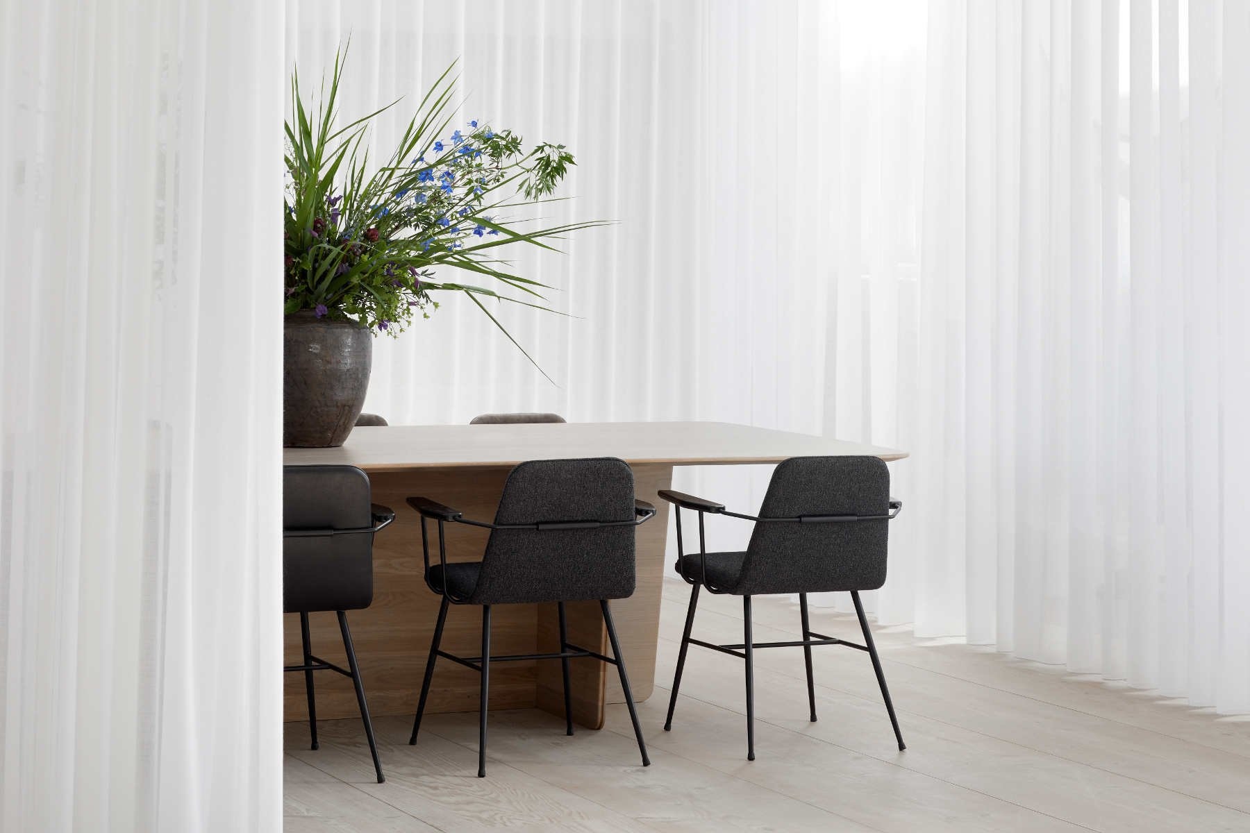 De Fredericia Spine stoel is fraaie stoel die diverse elementen tot één weet te brengen. Zo heeft deze stoel sterke lijnen, maar ook weer subtiele rondingen waardoor deze kenmerken goed bij elkaar komen. Bovendien is de stoel voorzien van een goed zitcomfort door de zachte, maar stevige zitting. Kortom met deze stoel voorziet u vele ruimtes van een goede en elegante stoel in bijvoorbeeld kantoren, vergaderruimtes of lounges. Diverse opties mogelijk