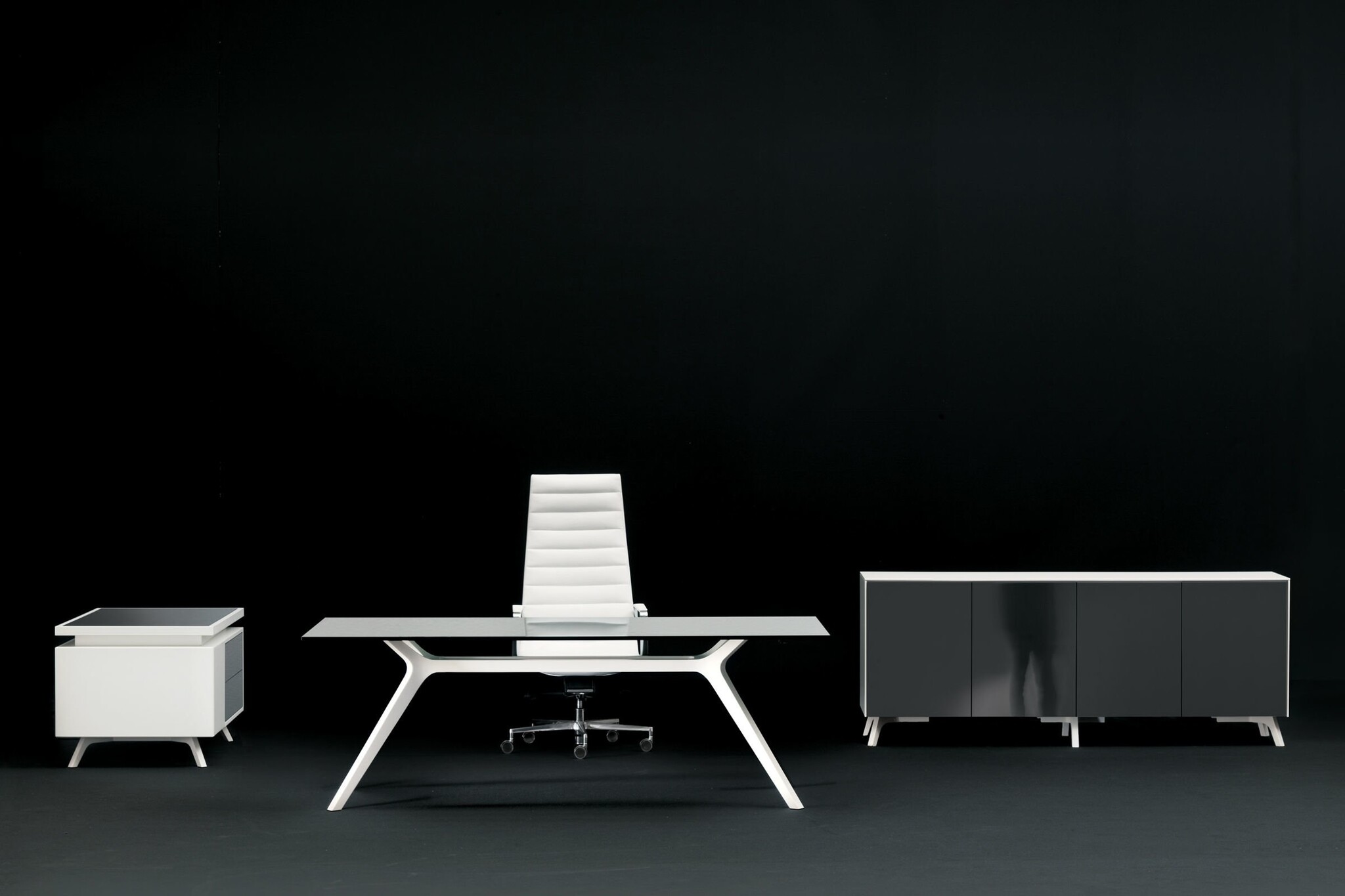 Frezza DR bureau en bijpassende dressoirs of kasten. Design Claudio Bellini. Beschikbaar in verschillende kleuren.