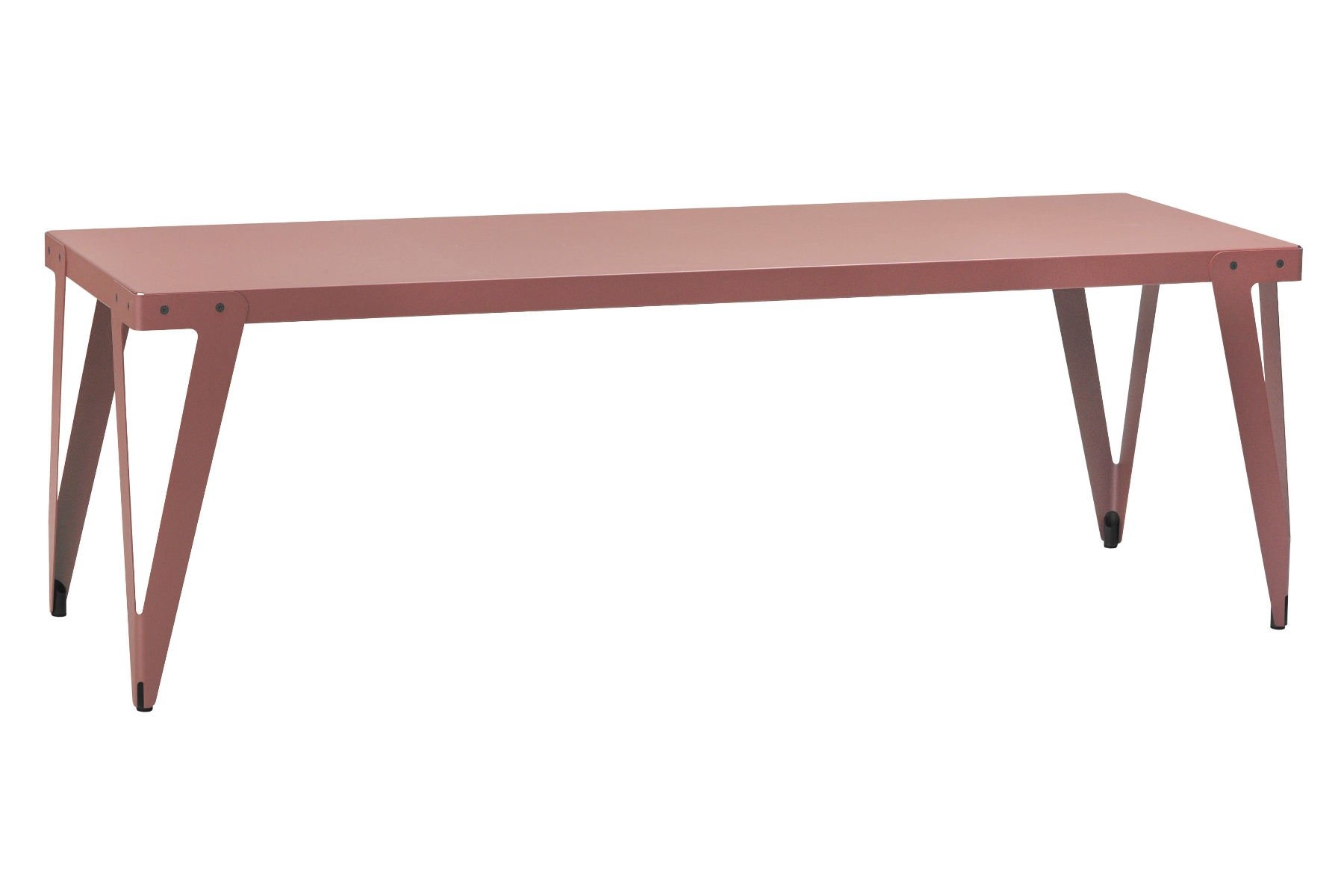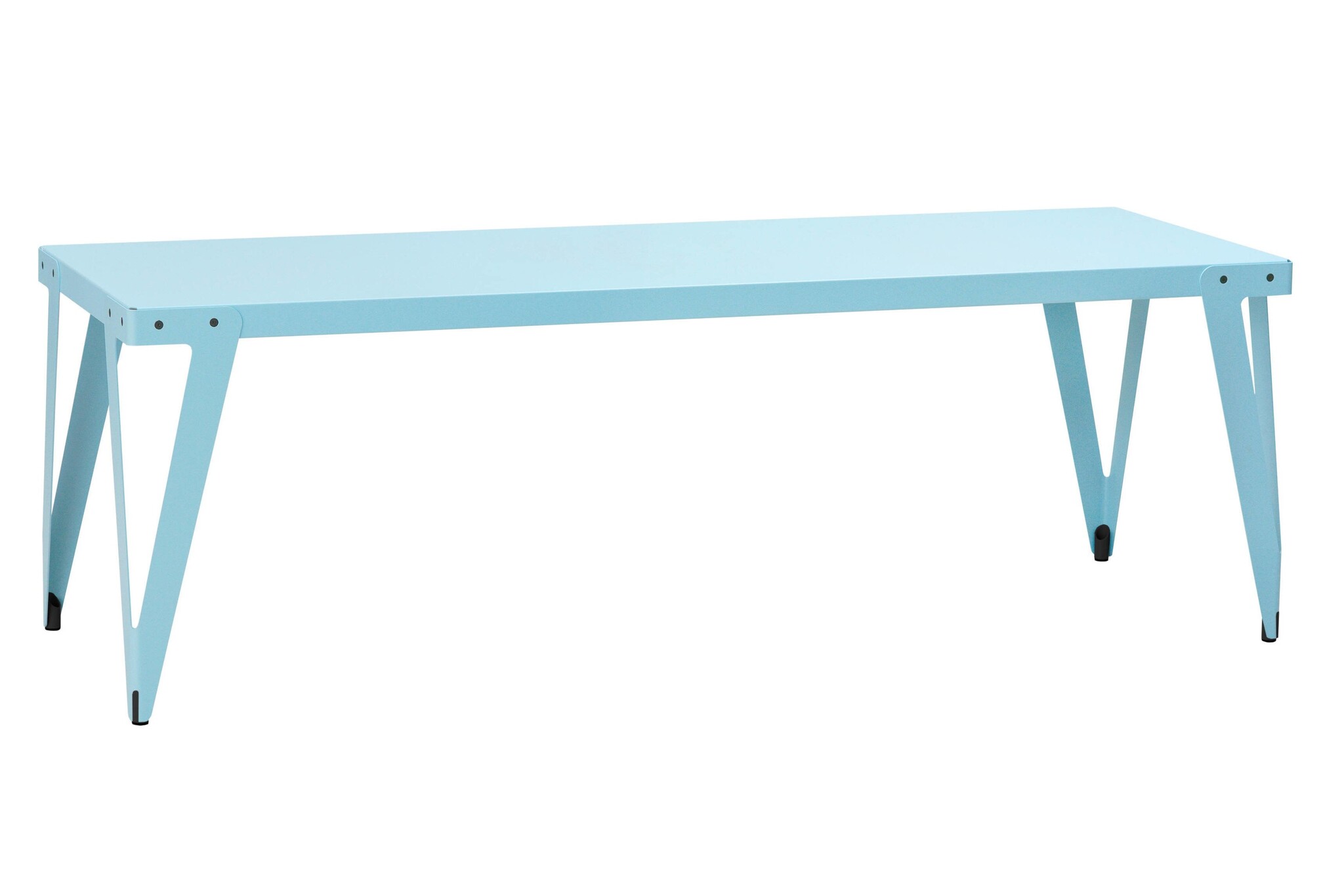 De Loyd tafel is tevens leverbaar in een variant voor buitengebruik in drie afmetingen en vier kleuren.