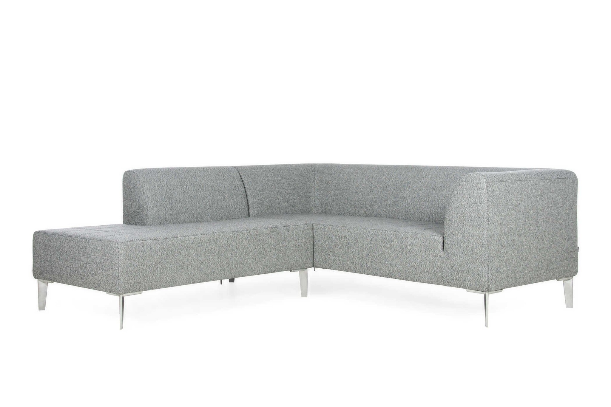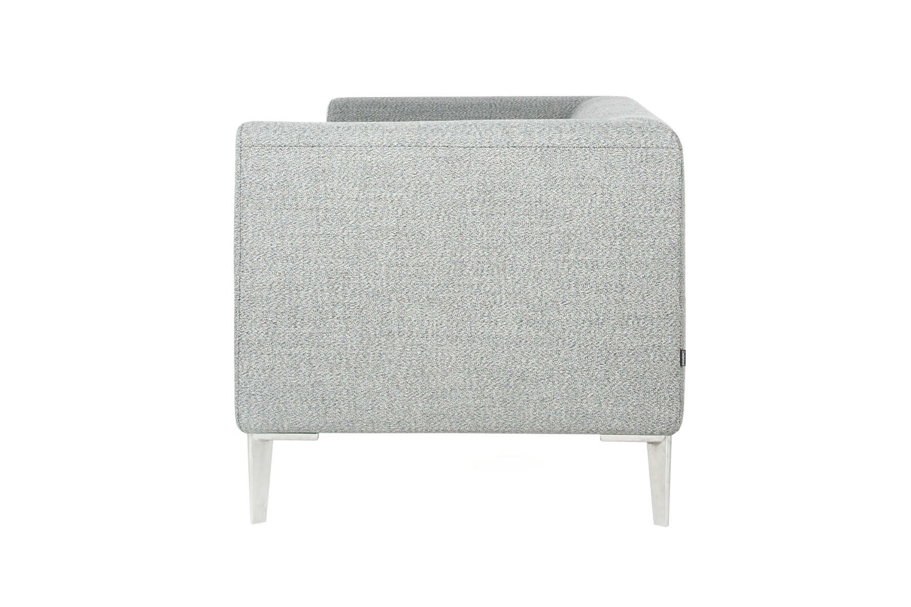 De poten van dit zitmeubel zijn zowel in glanzend aluminium als zwart te leveren