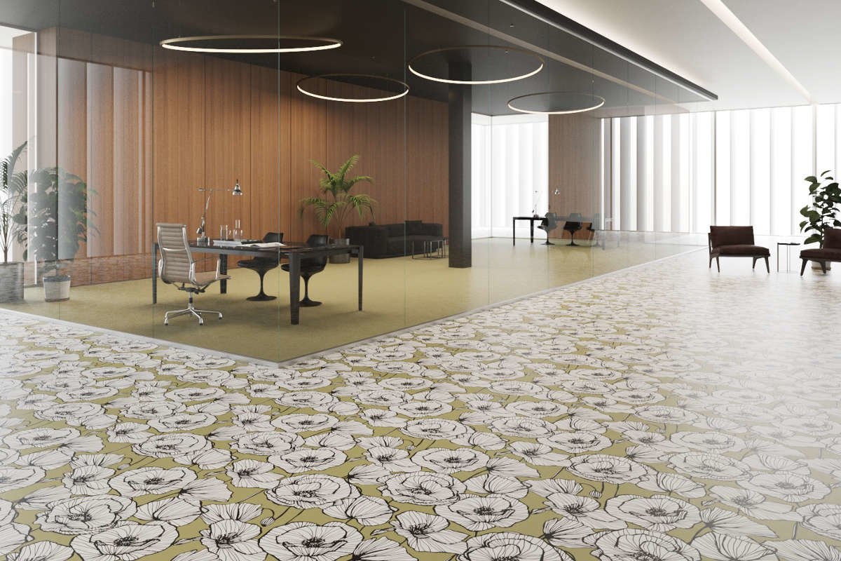 Duurzame vloerbedekking, aan het eind van de levensduur volledig, 100% recyclebaar.
