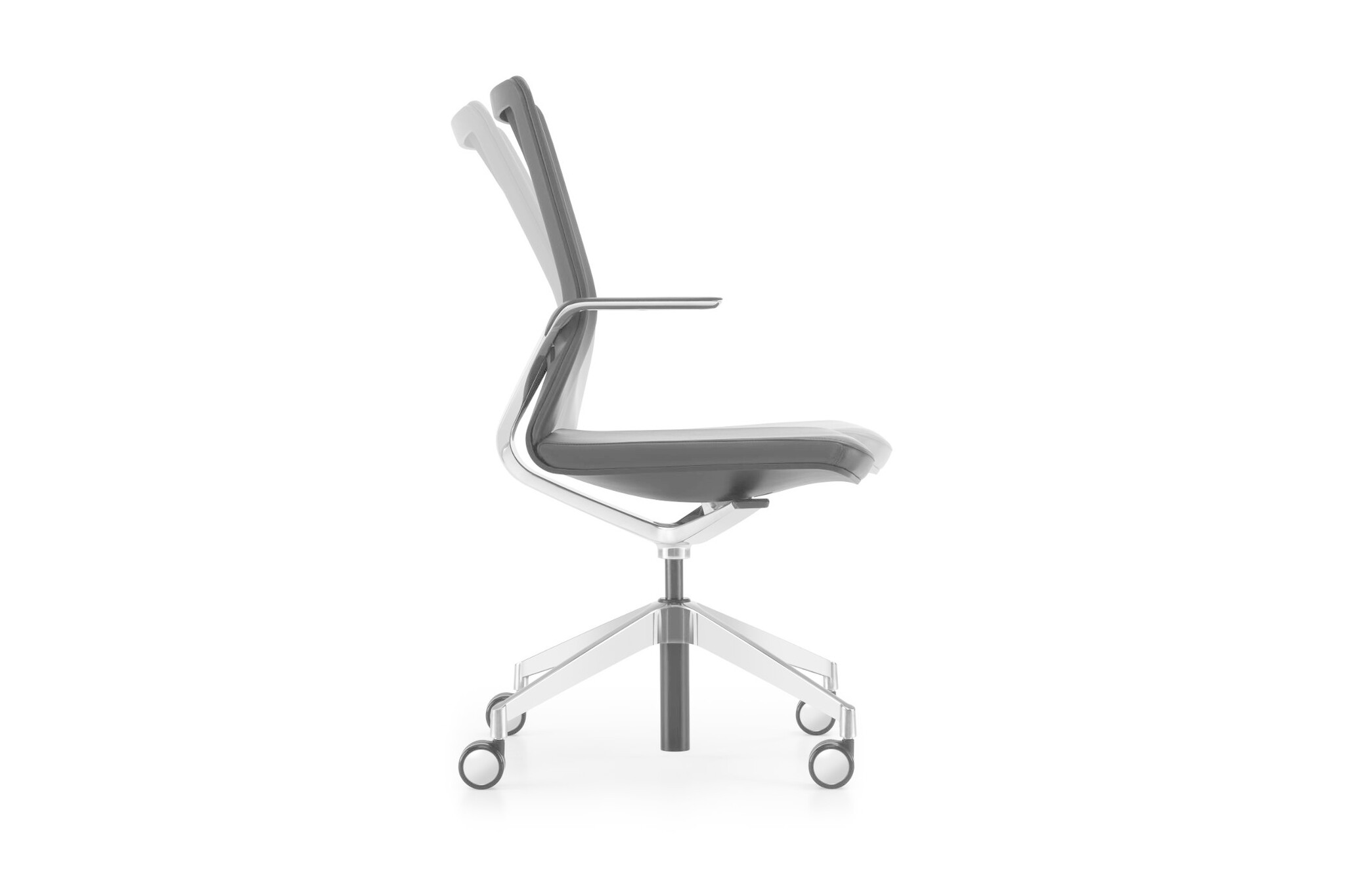 Girsberger Linq is een elegante bureaustoel, geschikt voor de representatieve vergaderruimte en andere communicatieve kantoorruimtes. De functies zijn teruggebracht tot een hoogte-instelling en een intelligent neigmechaniek, welke onzichtbaar onder de zitting geïntegreerd is en een comfortabele beweging van de rugleuning mogelijk maakt.Door de eenvoudige bediening is Linq zeer geschikt voor de flexwerkplek. Voor gebruik op een flexwerkplek is Linq uitgerust met een vijfteensvoet, voor het gebruik in de vergaderruimte kan gekozen worden voor een vierteensvoet.
