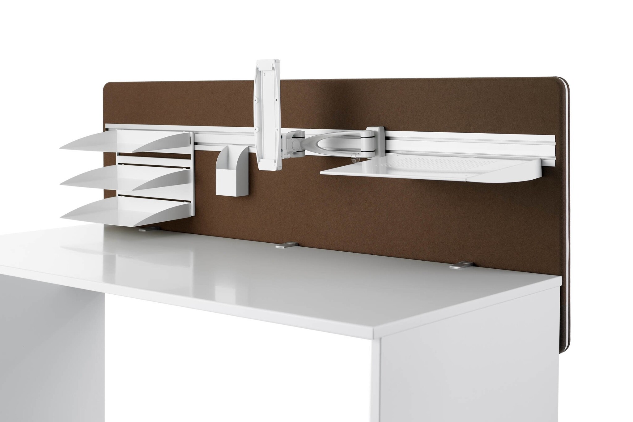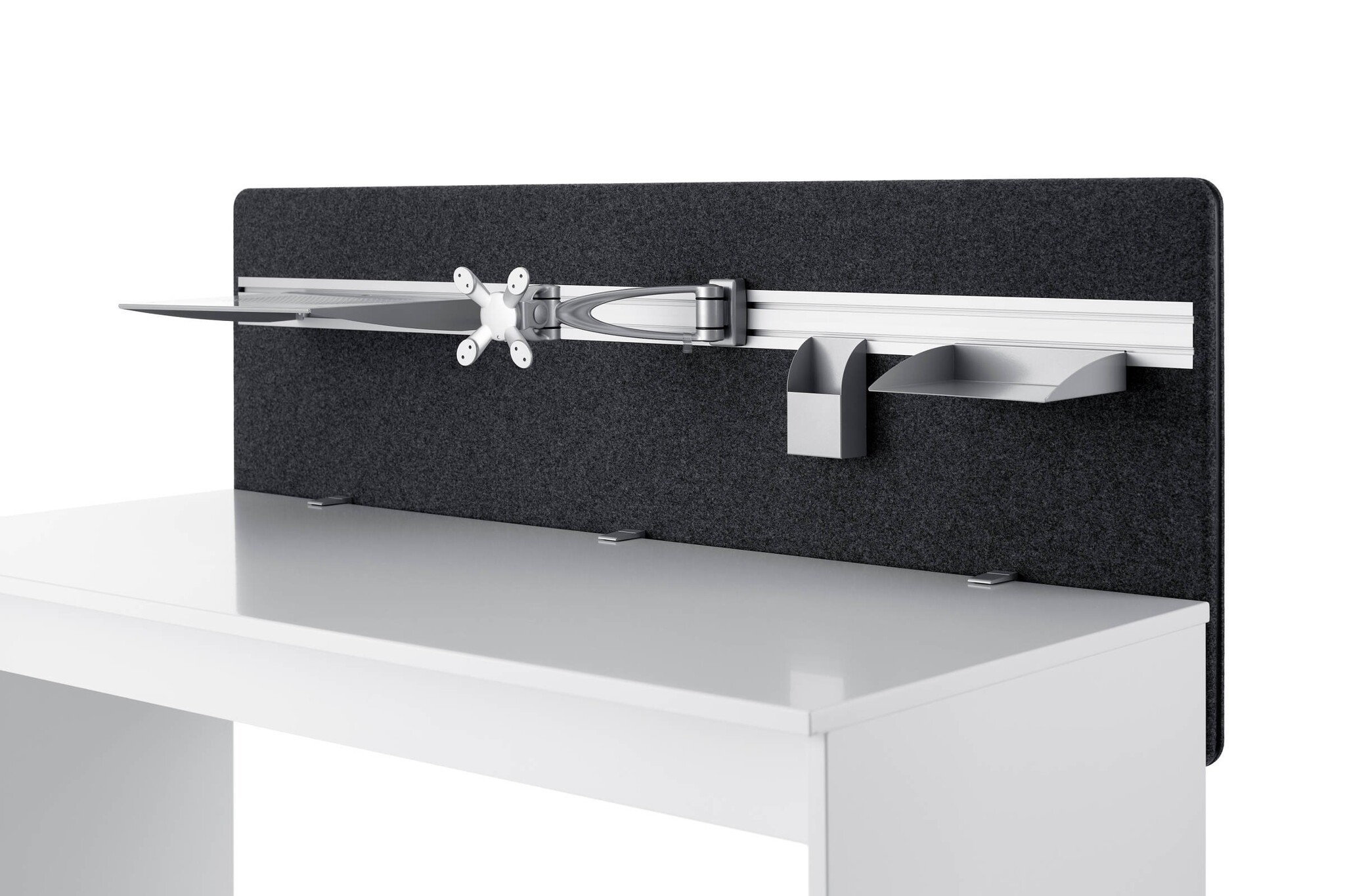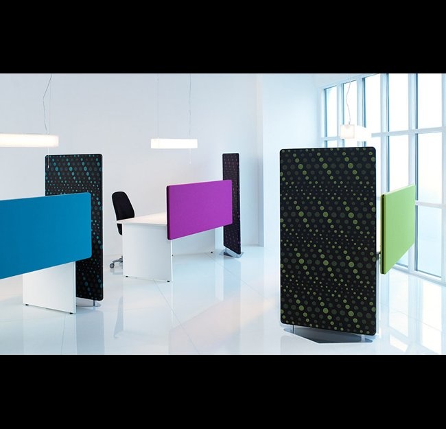 De Contrast van Glimakra is een akoestisch scherm gemaakt van een MDF-plaat waar aan beide zijden 15 mm polyether is gelijmd. Het scherm is bekleed met stof. De voetplaat is 750 x 400 mm en gemaakt van een matte poedercoating, afgewerkt met chroom of grijs gelakt. De Contrast is 100 % recyclebaar.