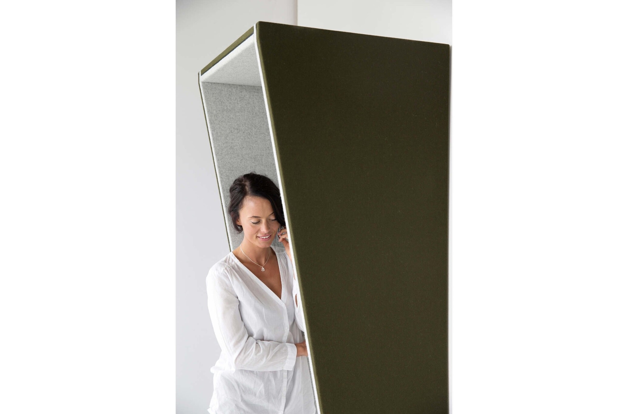 Een akoestische telefooncel met een hoge absorptiecapaciteit. Limbus Phone is ideaal om in stilte te telefoneren midden in een drukke werkomgeving. Limbus Phone is leverbaar in drie varianten: Limbus Phone Booth single, Limbus Phone Booth double en Limbus Phone Hood. Deze zijn geschikt voor 1-, 2 of meer personen. Verder is Limbus Phone akoestische belcel gestoffeerd uit te voeren.