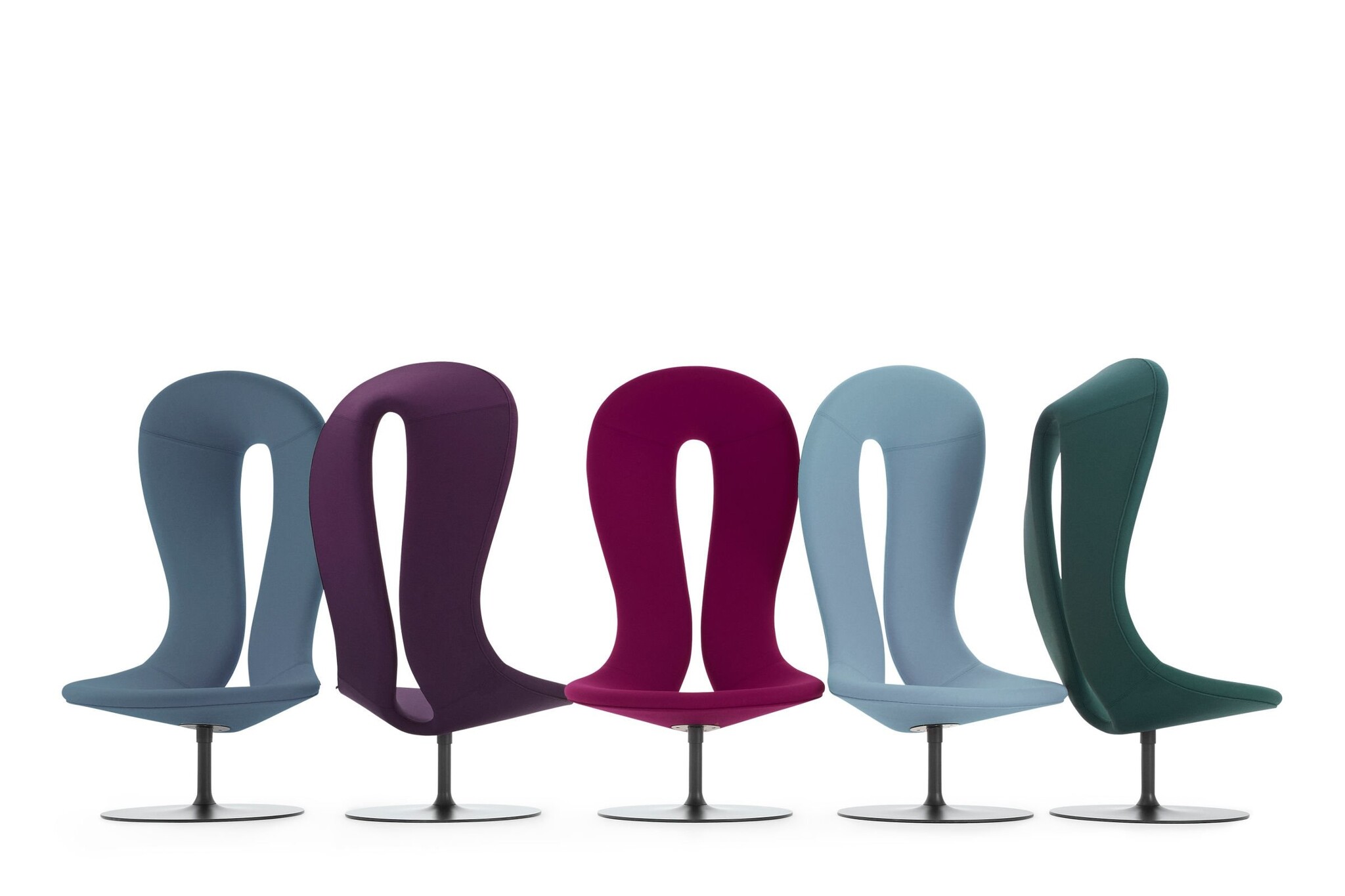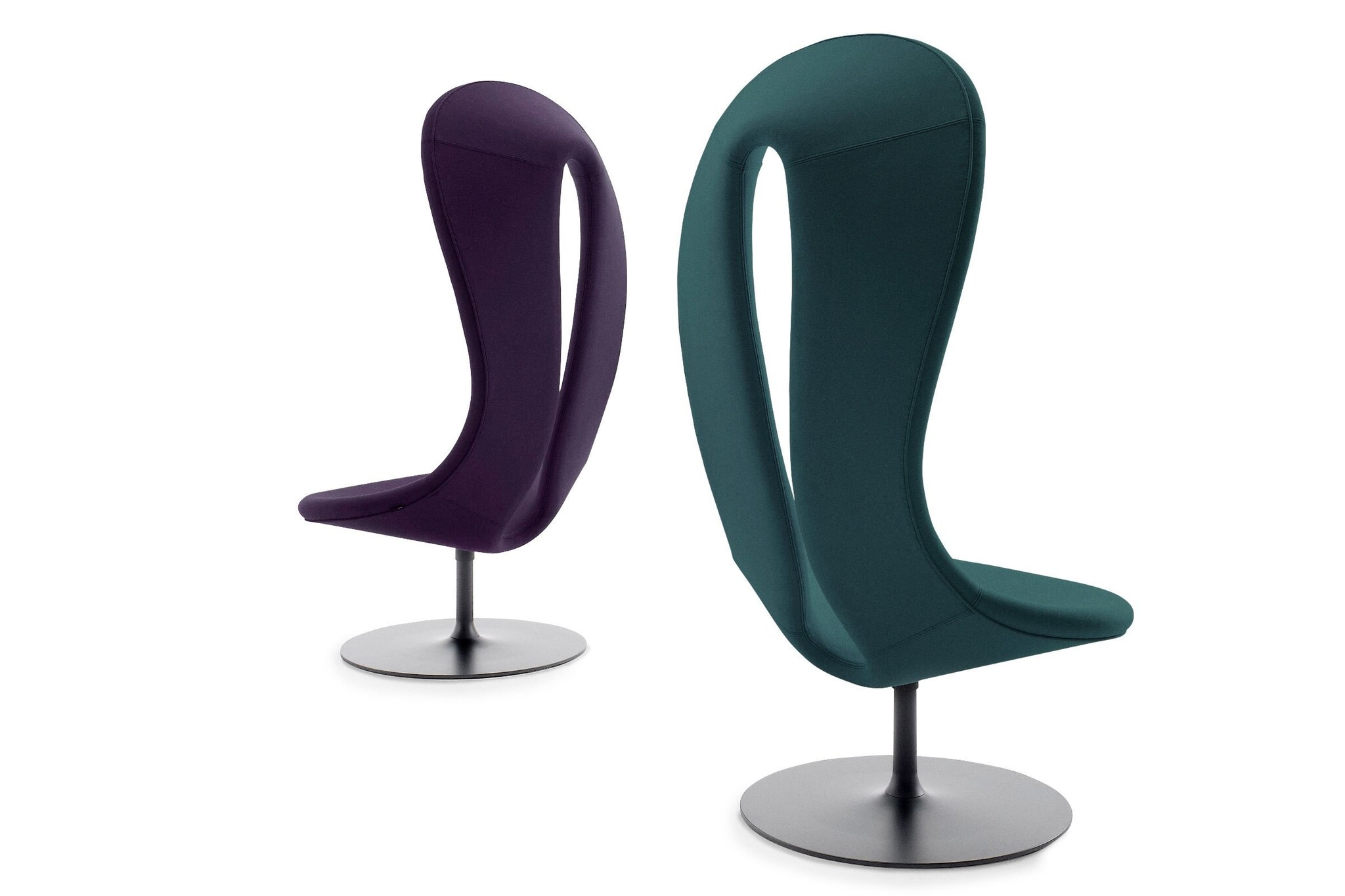 +Halle Hannah is een unieke lounge fauteuil met een draaivoet. De stoel is voorzien van een hoge rugleuning en heeft een zachte zitschaal. De karakteristieke opening in de rug maakt de fauteuil elegant en dynamisch.