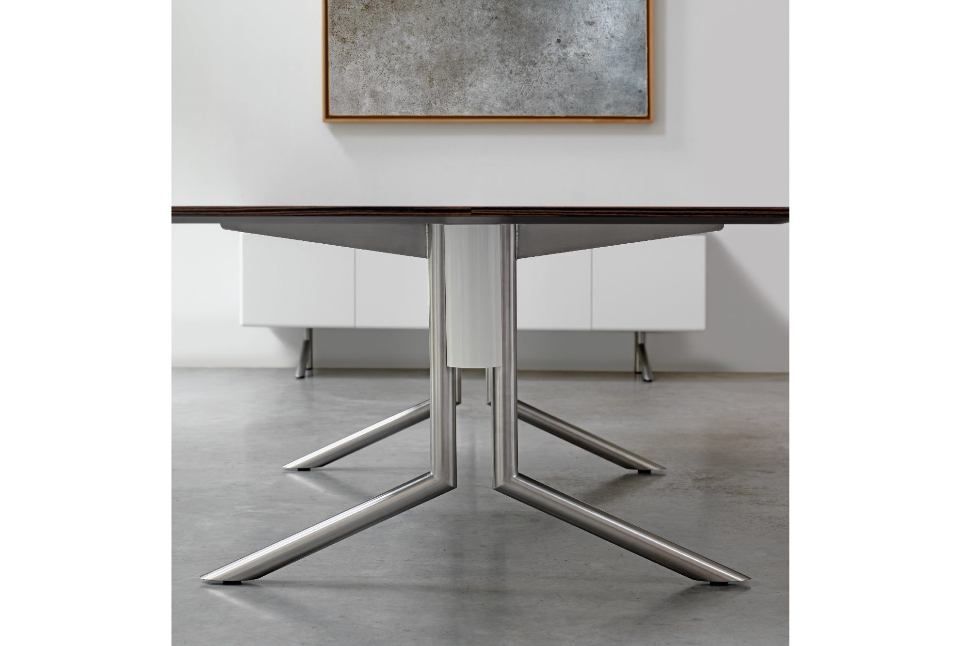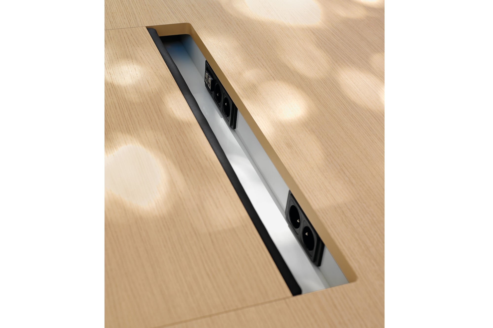Dit vergadertafel programma biedt een scala aan opties qua afwerking en vorm: rechthoeking, ovaal, tonvormig, U-vormig, rond en vierkant. Hoogwaardig fineerwerk in combinatie met gebruik van geavanceerde technologie kenmerkt Haworth Audience.De bladen worden standaard met een geborsteld gelakte rand geleverd, fineer randafwerking is een optie.