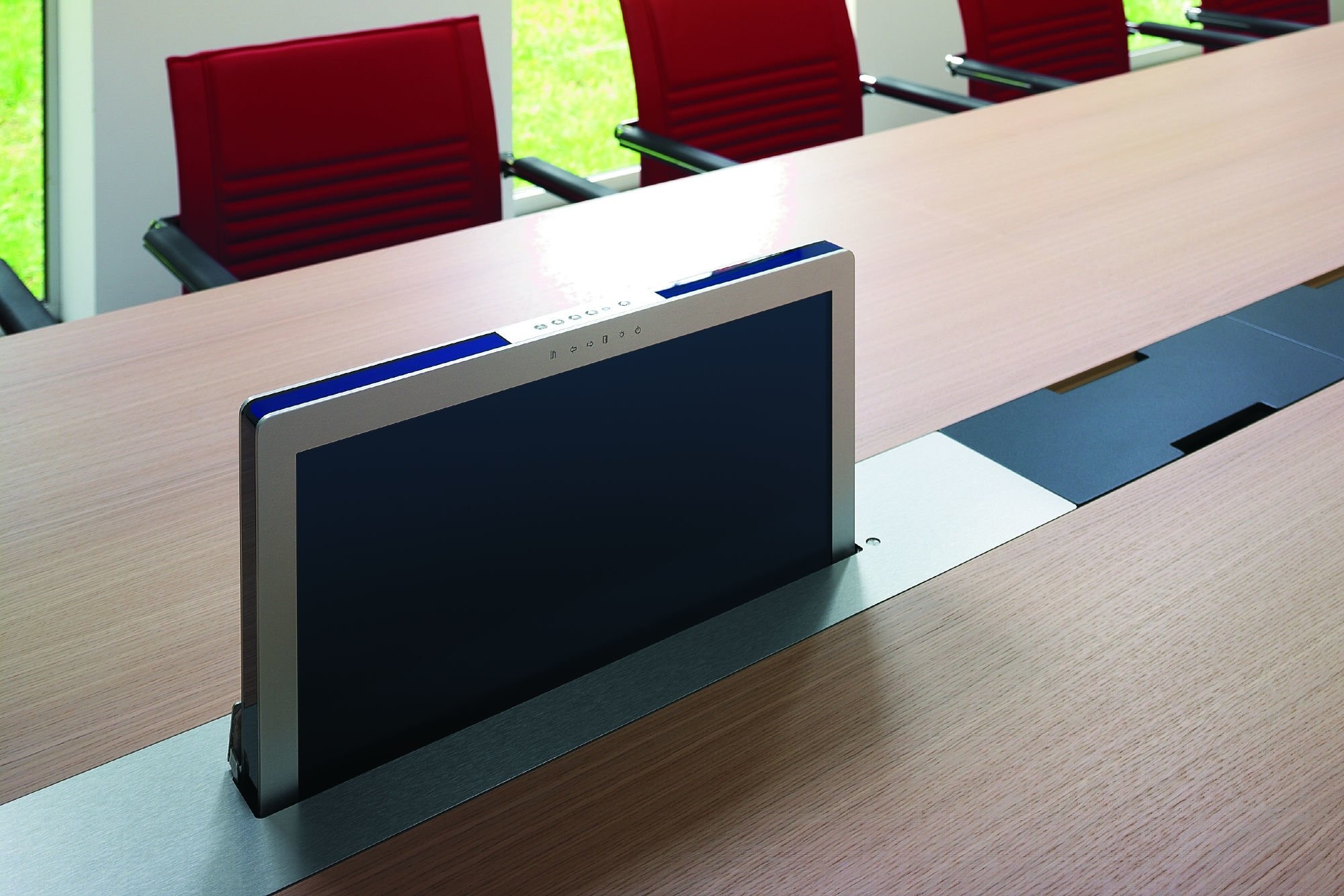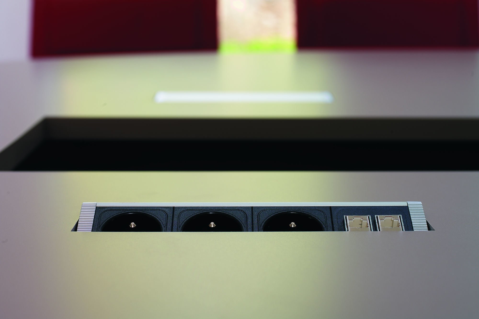 De lessenaar is voor zien van 1x 230volt en 1x data aansluiting met kabelgoot. Het compartiment onder het blad biedt ruimte voor een laptop. Haworth Audience lessenaar kan worden uitgevoerd met een microfoon en verlichting.