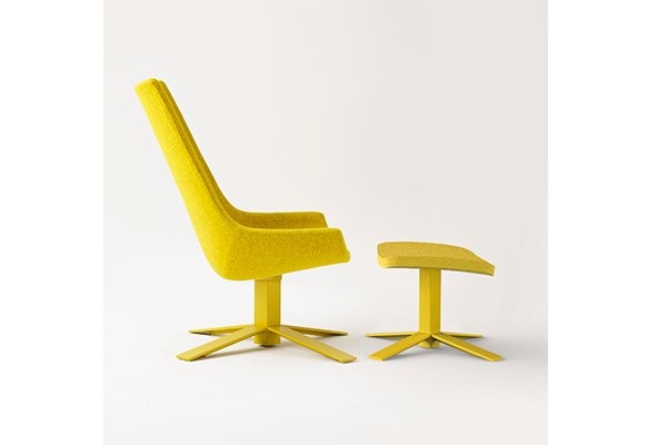 Een lounge fauteuil met- of zonder luifel en bijpassende voetsteun vormen een set van meubilair geschikt voor luchthavens, lobbys en vele diverse openbare ruimtes. Windowseat van Haworth biedt visuele privacy binnen drukke omgevingen. Deze lounge fauteuil is gemaakt van gegoten schuim over een stalen frame en is leverbaar in vier standaard Divina Melange stoffen.