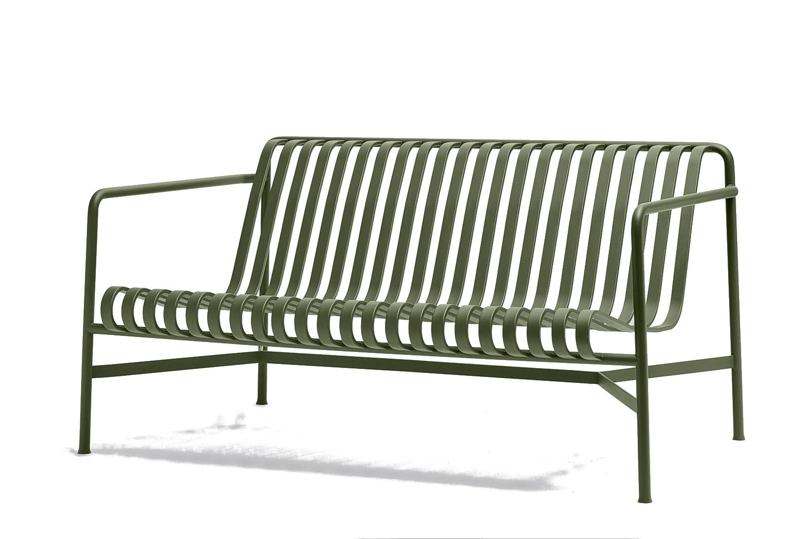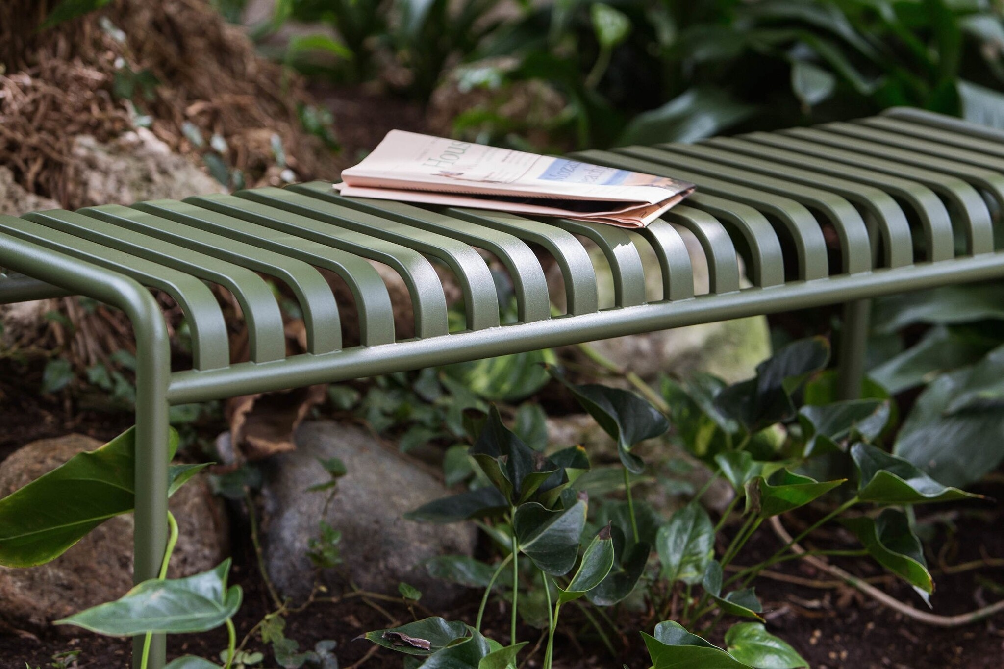 HAY Palissade bank is onderdeel van de Palissade collectie hoogwaardig design buitenmeubilair. Het ontwerp van deze bank en outdoor meubilair serie is van het Franse designer duo Ronan en Erwan Bouroullec. Geen onbekenden voor het Scandinavische design merk HAY aangezien ze meerdere ontwerpen op hun naam hebben staan. De bank is vervaardigd van gegalvaniseerd staal met een poedercoat en leverbaar in 3 moderne kleuren; olijfgroen, lichtgrijs en antraciet. De verticale lijnen van de zitting en de rugleuning maken de bank modern en tegelijkertijd elegant. Doordat de bank een hoge rugleuning heeft zit hij ook nog eens extra comfortabel.