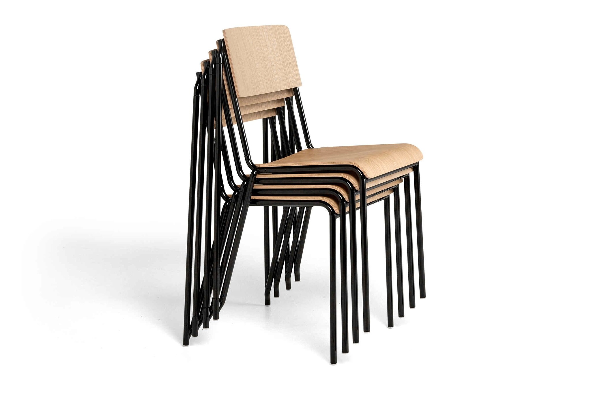 De HAY Petit Standard stoel is een echte eyecatcher. Mooi design en functioneel. Door het gegoten aluminium en de stalen buizen is er een zeer stabiele stoel ontstaan die tevens te stapelen is. Het lichtgewicht frame heeft een opvallend geometrische uitstraling. De hoge rugleuning en gebogen zitting zorgen voor veel comfort, terwijl de stevige buisconstuctie van het onderstel het stapelvermogen van de stoel optimaliseert. Hierdoor is deze HAY Petit Standard stoel ideaal voor zakelijke omgevingen, onderwijsinstellingen en de horeca. Diverse combinaties mogelijk