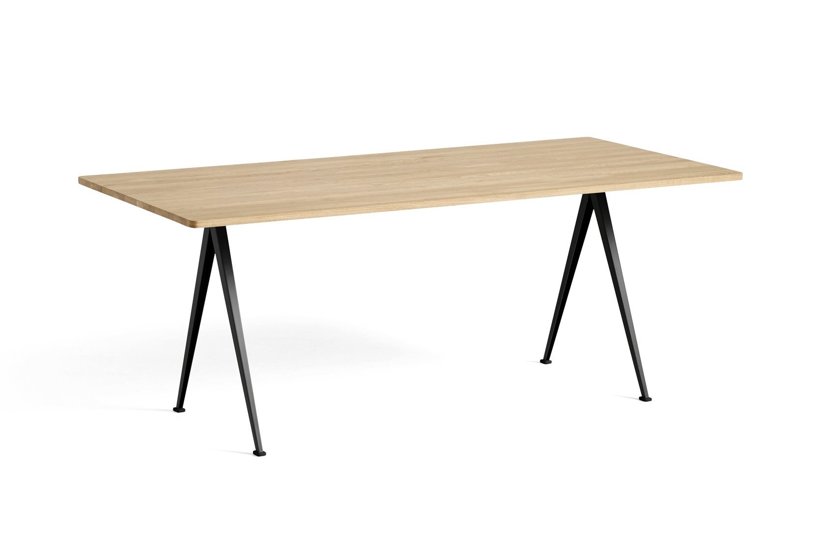 De HAY Pyramid Table beschikt over stalen poten en een massief eikenhoutenblad met een clear of een mat finish. De bladdikte van het eikenhouten blad is 21 mm.
