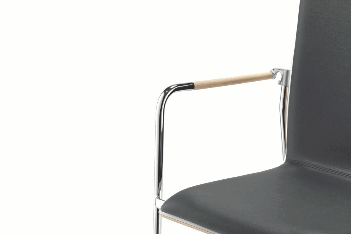 151: ronde stalen buis met een diameter van 18 mm, hout inleg massief beukenhout armsteun