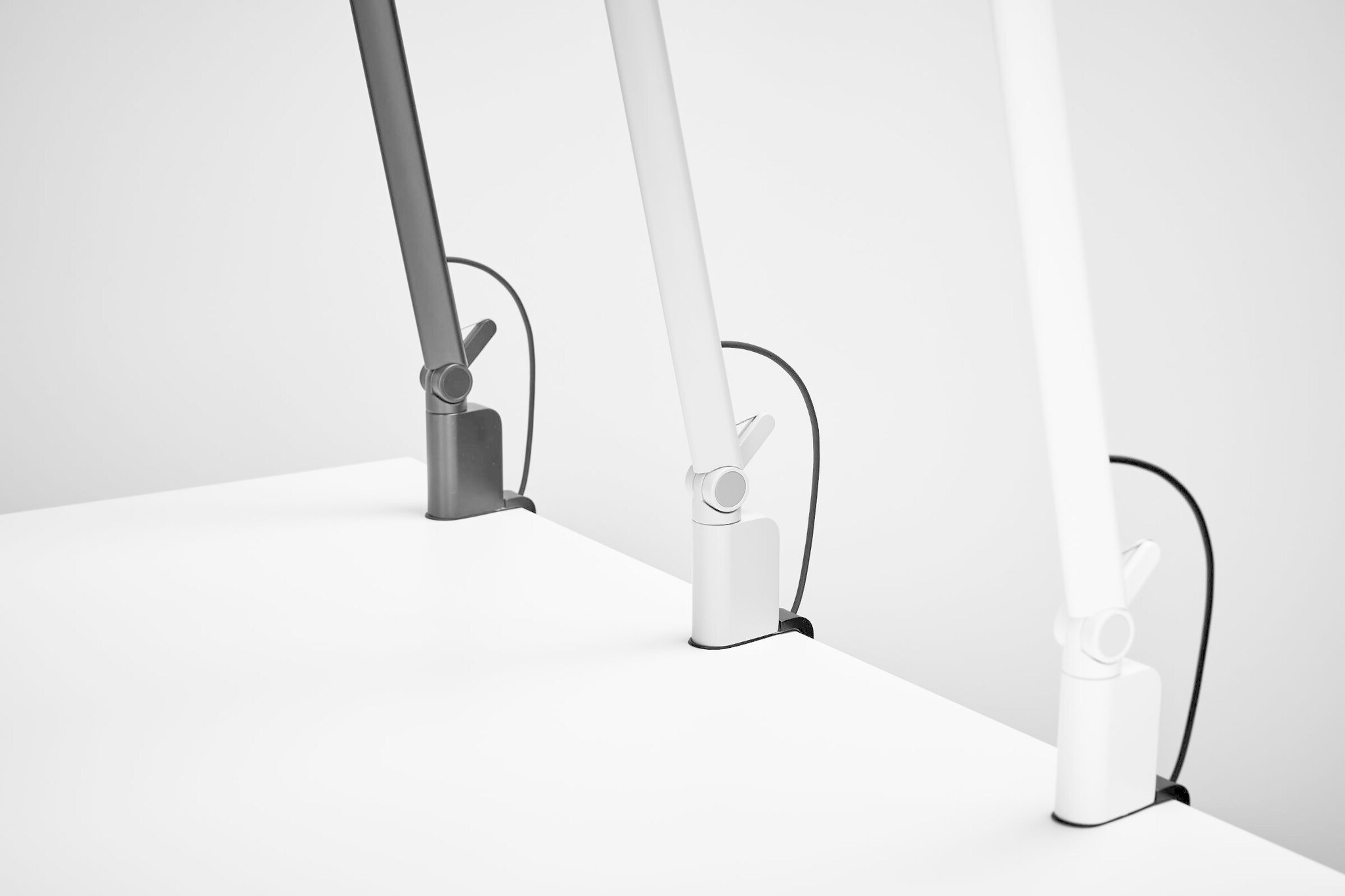 Bevestiging: klem voor werkblad, tafelvoet, wandbevestiging en wandrailbevestiging.
