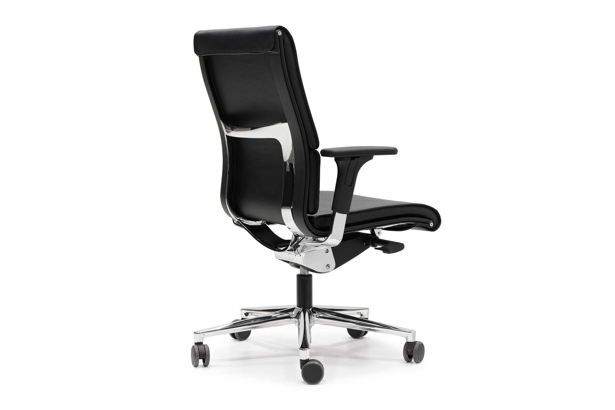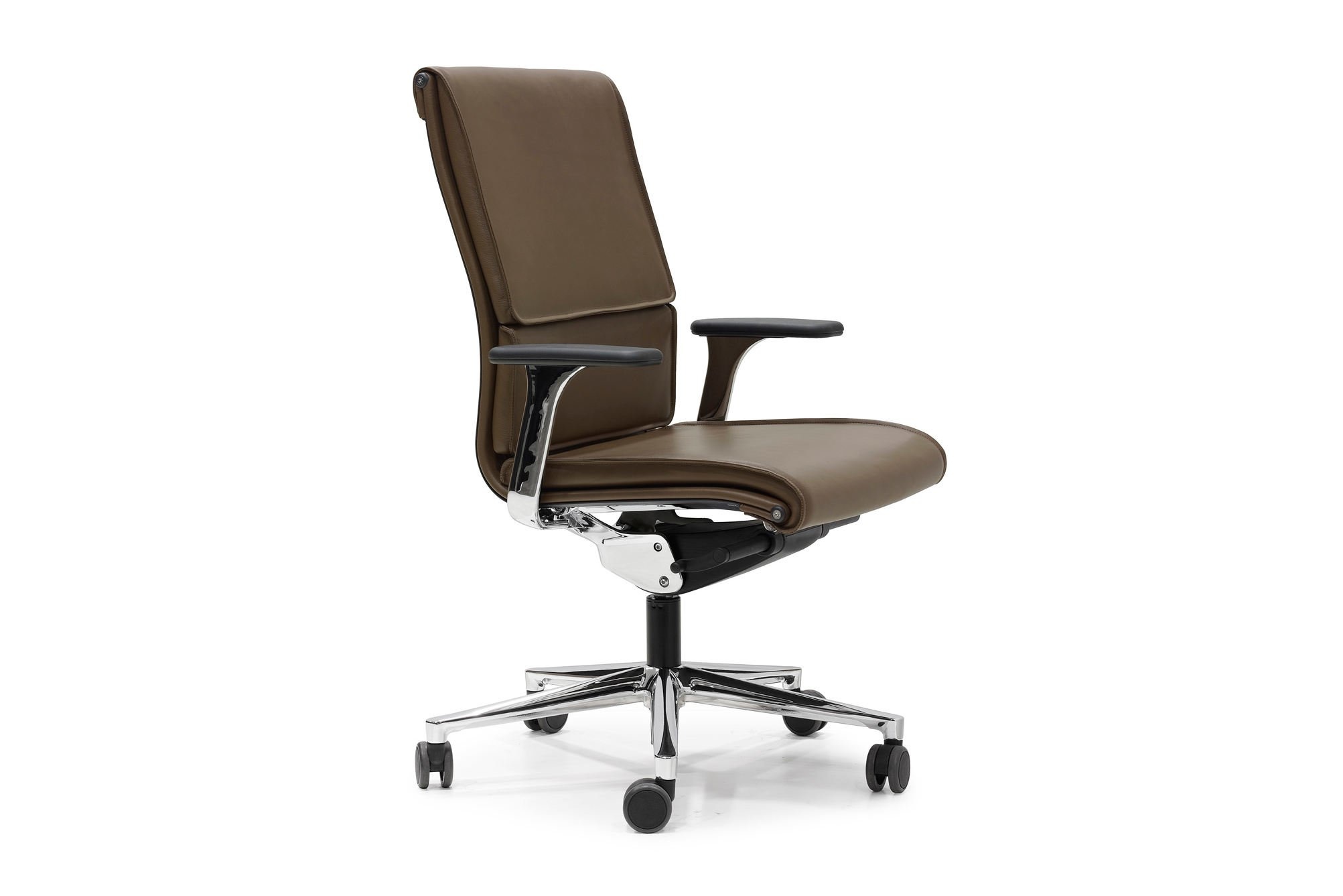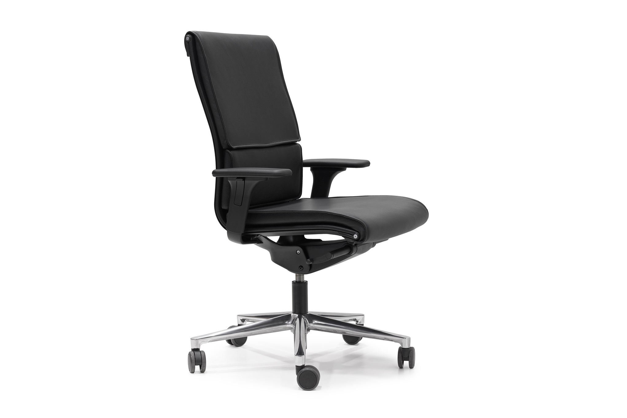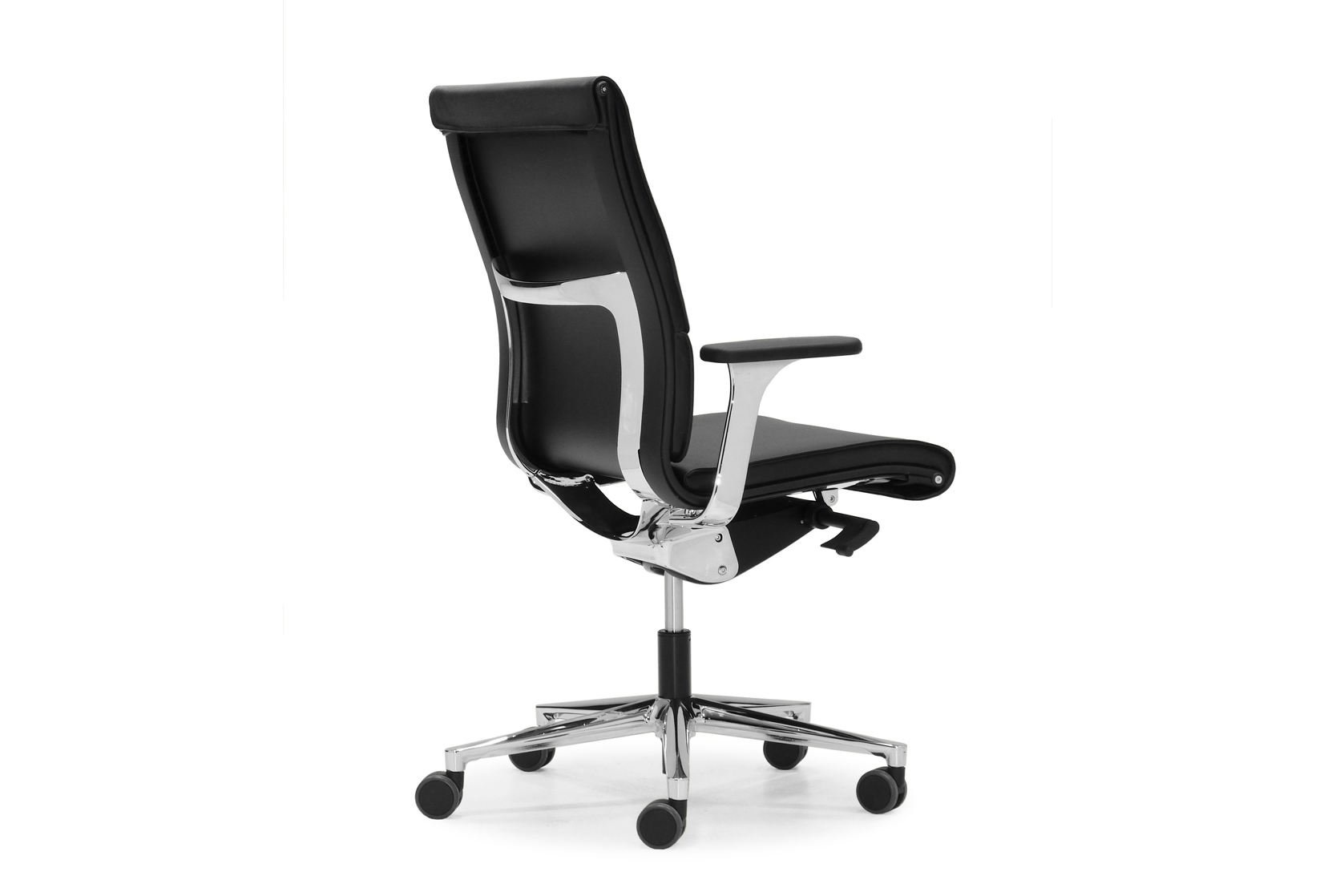 Vaste armleuningen en 3D-armleuningen zijn beschikbaar. De 3D armen zijn in hoogte, breedte en diepte verstelbaar. Optioneel is een lederen armsteun mogelijk. Leverbaar met hoofdsteun.