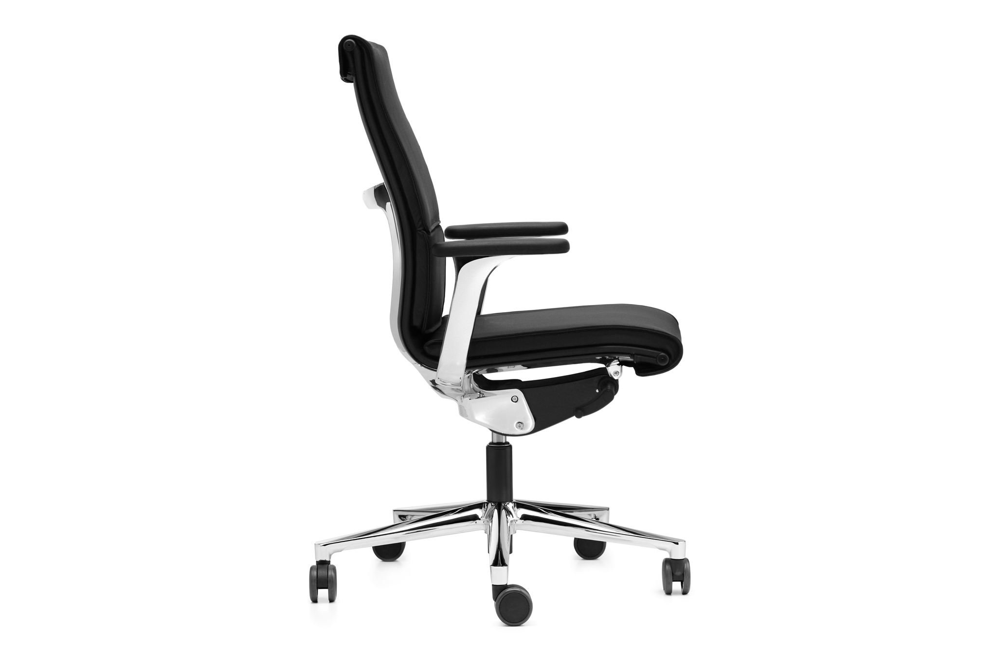 Armleuningen: aluminium vaste armleuningen en 3D-armleuningen zijn beschikbaar. De 3D armen zijn in hoogte, breedte en diepte verstelbaar. Optioneel is een lederen armsteun mogelijk.