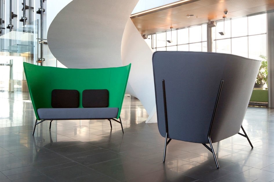Deze bank is een harmonieuze en gezellige 2-zits bank. Het omringt je en is perfect voor het creëren van rustige interieurs. Door de hoge rug van de verleidelijke en sympathieke volledig gestoffeerde Aura bank werkt deze ook als een divider | verdeler van de ruimte en daarnaast ook als een geluiddemper in een grotere ruimte.