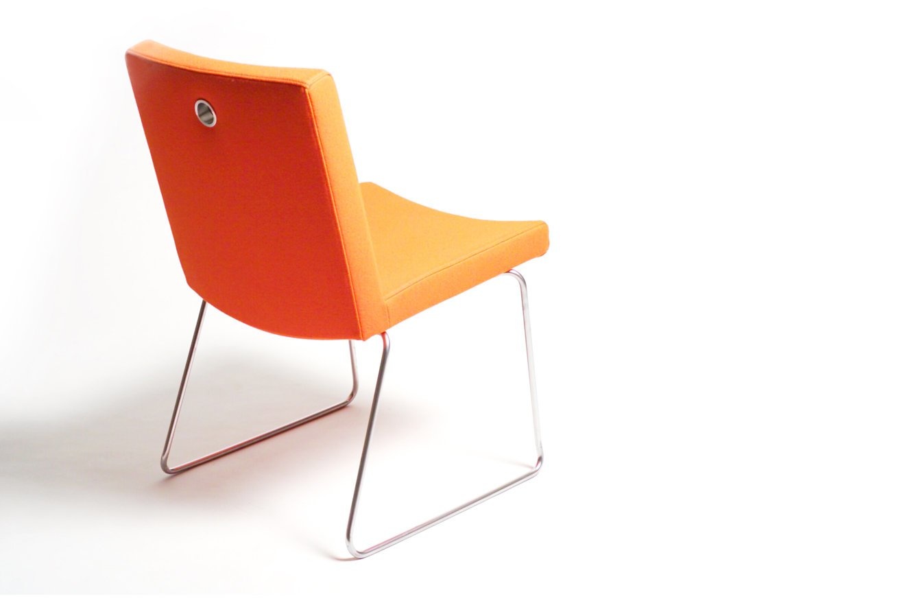een stapelbare sledestoel zonder armleuningen en met of zonder plastic glijders (de Select Medium Rod) of