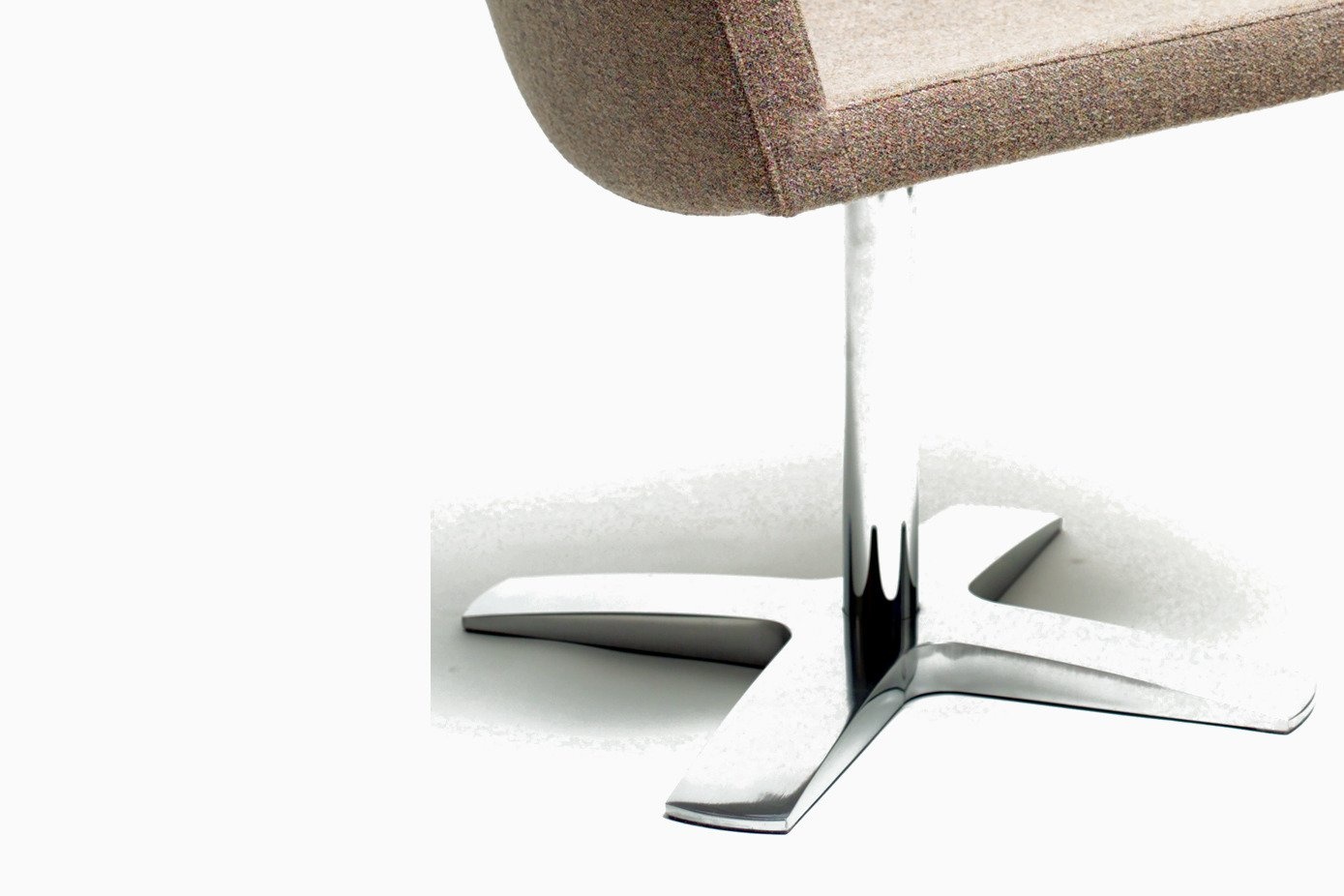 een buispaal met vierkante voetplaat en volledig gestoffeerde zitschaal zonder armleuningen (de Select Medium),