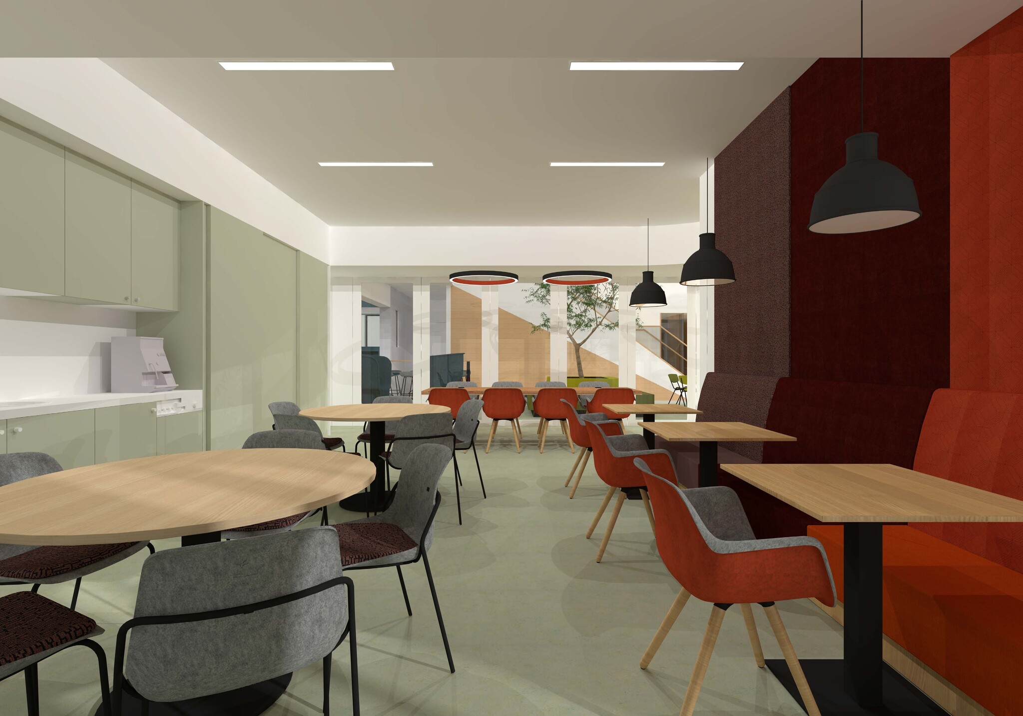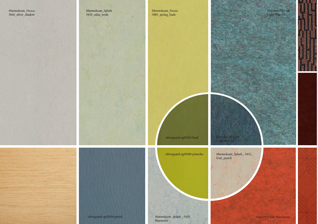 Onderwijsinrichting Interieurontwerp Systeemwanden en plafond Vloerontwerp: Marmoleum en tapijt Verlichting Projectinterieur divers Concentratieplekken
