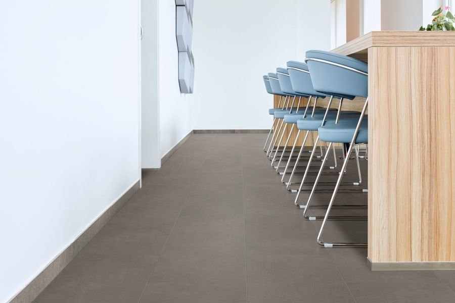 Moduleo 55 Tiles Hoover Stone is één van de luxe vinyl vloeren uit de LVT collectie van IVC. Deze collectie uit de Tiles Moduleo serie biedt u de look van een echte vloer van beton maar met het gemak van een vinyl vloer. Hoover Stone vloeren in betonlook hebben een stoere en koele uitstraling. Een perfecte keuze voor op de vloer van een kantoor of welke zakelijke ruimte dan ook met een moderne inrichting. U heeft keuze uit 4 natuurgetrouwe, grijze betontinten. Ook een mooie vloer mooi in combinatie met Scandinavisch kantoormeubilair of bij een industriële inrichting met ruwe en natuurlijke materialen als basis.