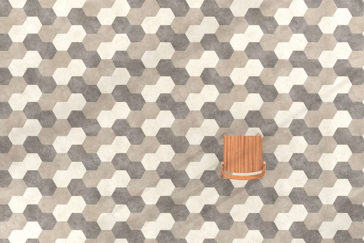 Moduleo 55 Studio Moods Hexagon 214 is één van de luxe vinyl tegels uit de LVT collectie van IVC en was voorheen bekend als Moduleo Moods Pattern. Hexagon motief wordt ook wel honinggraat motief genoemd en is een échte klassieker onder de vloerpatronen. Hexagon tegels hebben 6 hoeken en dus geen dominante hoek of richting. Hierdoor bieden de Studio Moods Hexagon 214 tegels uit de Moduleo serie van IVC een perfecte vloeroplossing voor elke soort, vorm en afmeting van ruimte. Met deze Hexagon vinyl tegels installeert u makkelijk en snel een honinggraat vloer in uw projectruimte en maakt u van uw vloer een echte blikvanger!