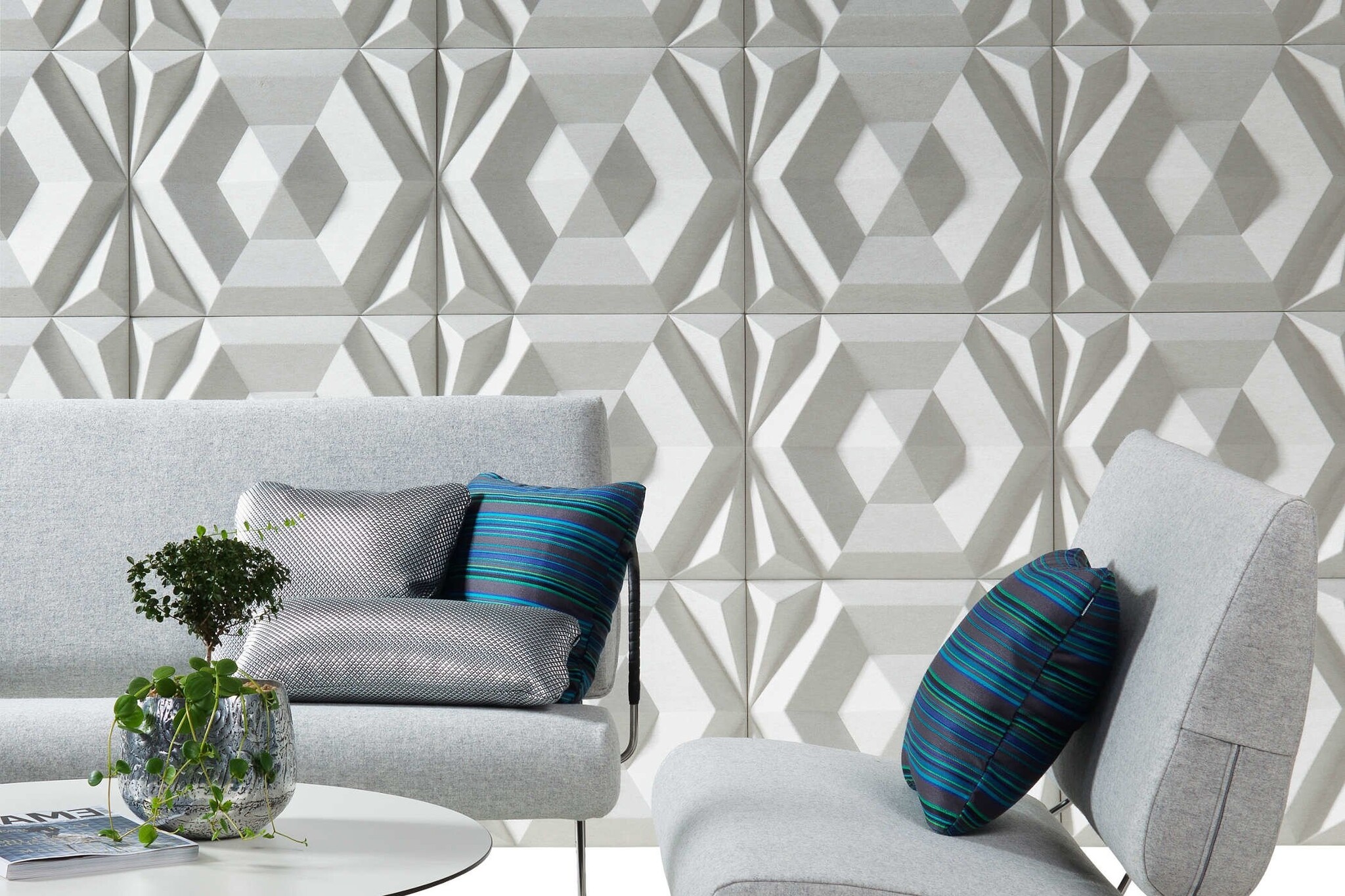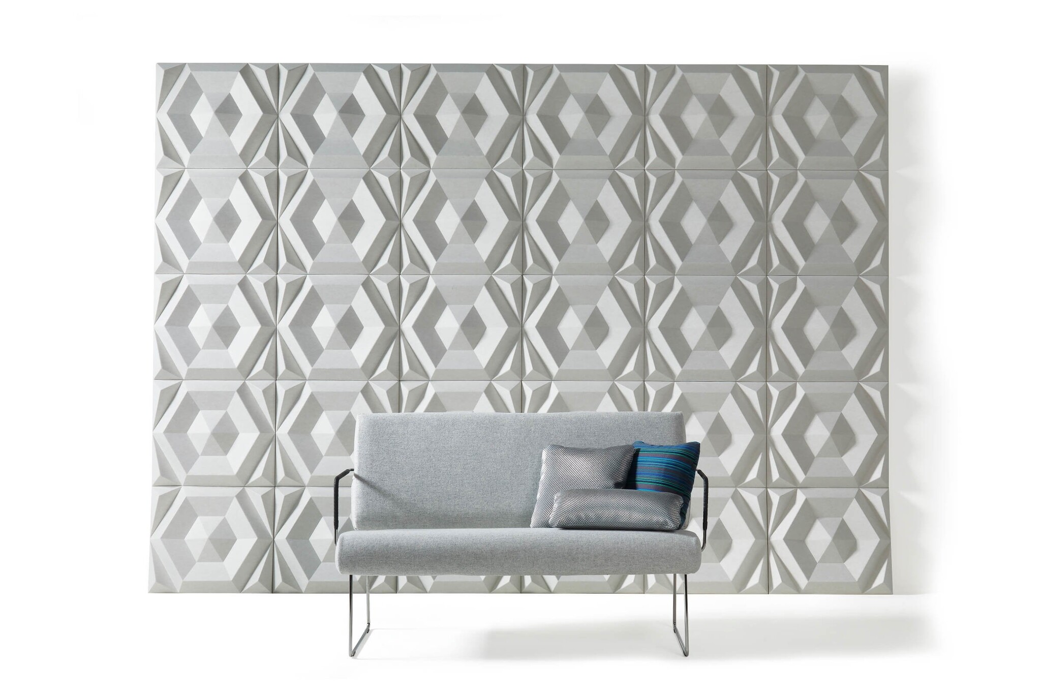 De Johanson Beehive Rectangular is, net zoals de Johanson Beehive geïnspireerd door de natuur, Beehive is Engels voor bijenkorf en de bij bouwt zijn bijenkorf met dit patroon louter vanwege haar sterke structuur en vereist een minimum aan materialen. De Beehive Rectangular is als rechthoek uitgevoerd om andere patronen te creëren dan de Beehive. De Johanson Beehive Rectangular is een geluiddemper dat geluid vermindert, zoals lawaai en stemmen. Hij is eenvoudig te monteren op de muur. Eigenschappen Johanson Beehive RectangularDe Beehive Rectangular akoestische wandpanelen zijn leverbaar in verschillende kleuren, zoals zwart / donker grijs / lichtgrijs en gebroken wit en zijn gemaakt van ecologische producten; 60 - 70% petflessen aangevuld met andere materialen die het vilteffect geeft. Optioneel zijn de akoestische panelen te bekleden met Europost. Hierbij is een keuze uit 48 kleuren.