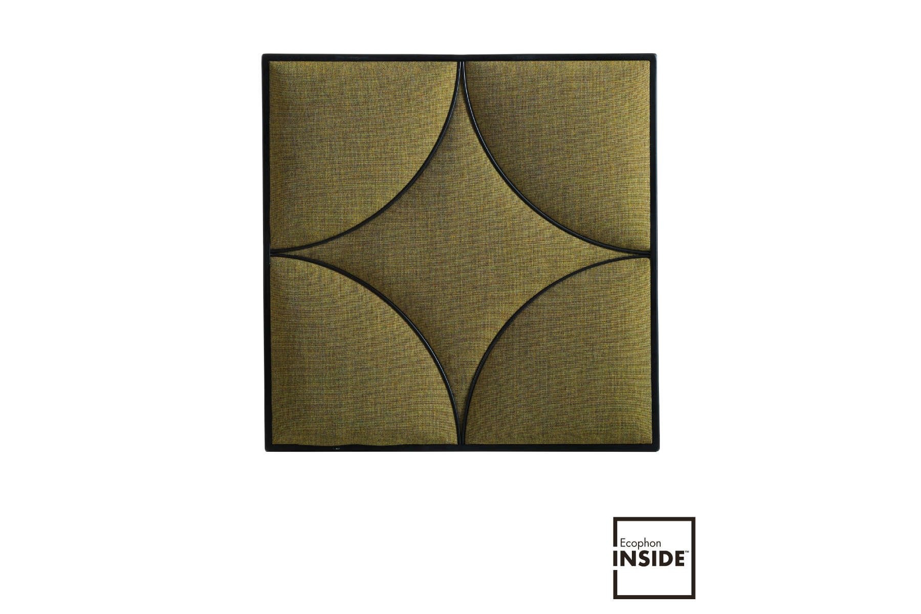 Geluiddemper in stof met metalen frame. Alleen verkrijgbaar in de stoffen Cara, Carlow en Fiji van Camira en de stoffen Hush, Event Screen en Xpress van Gabriel.