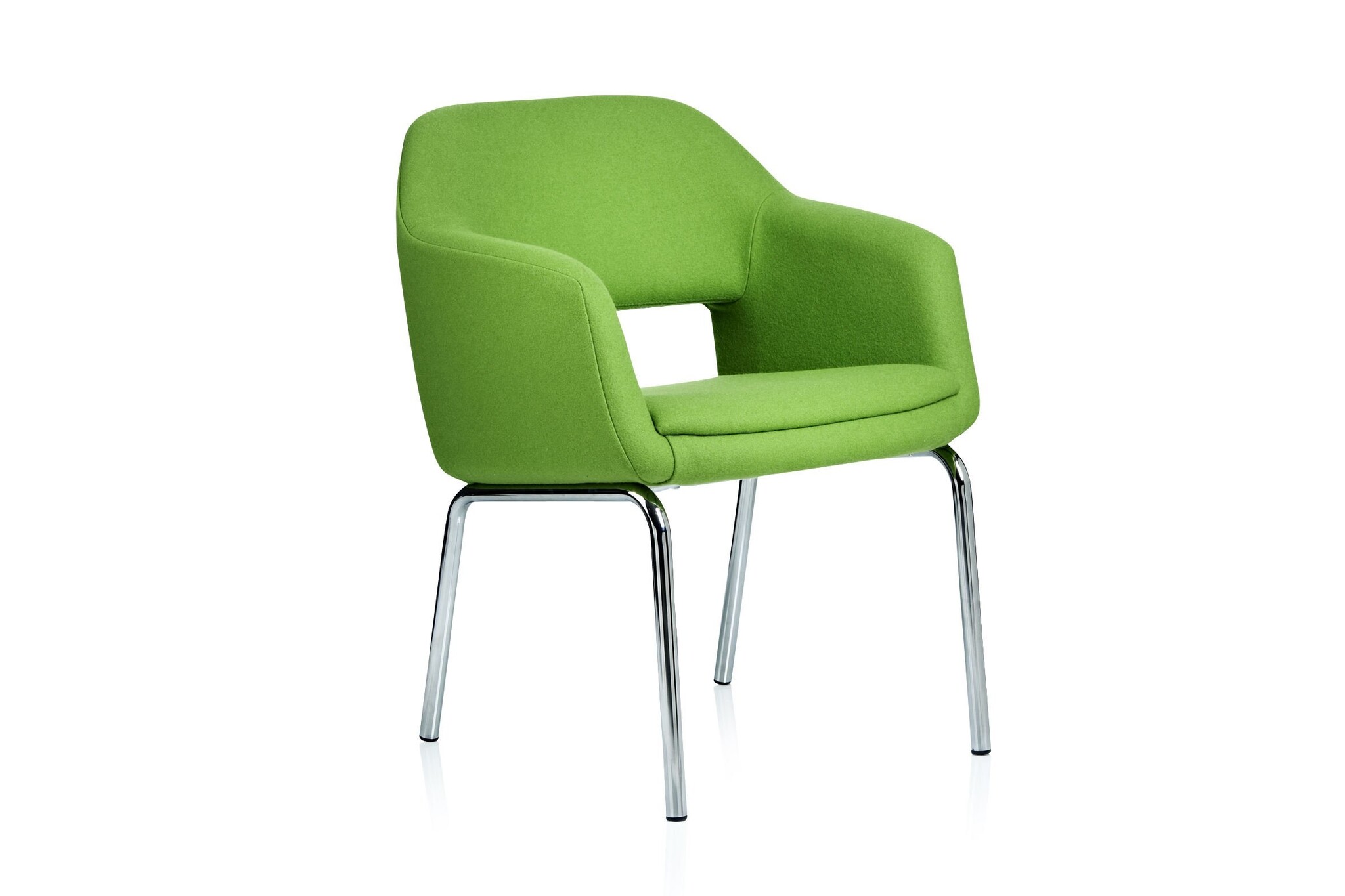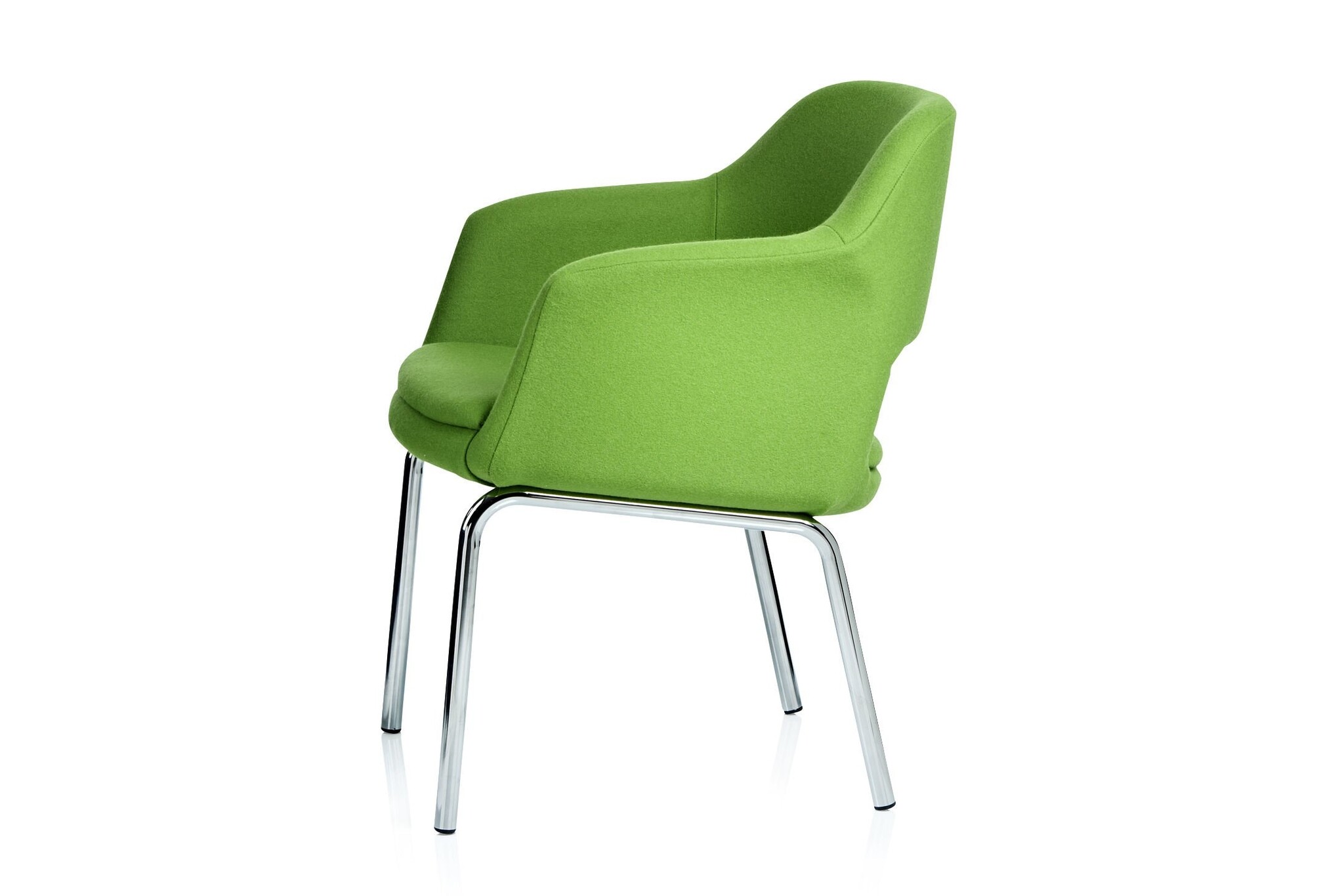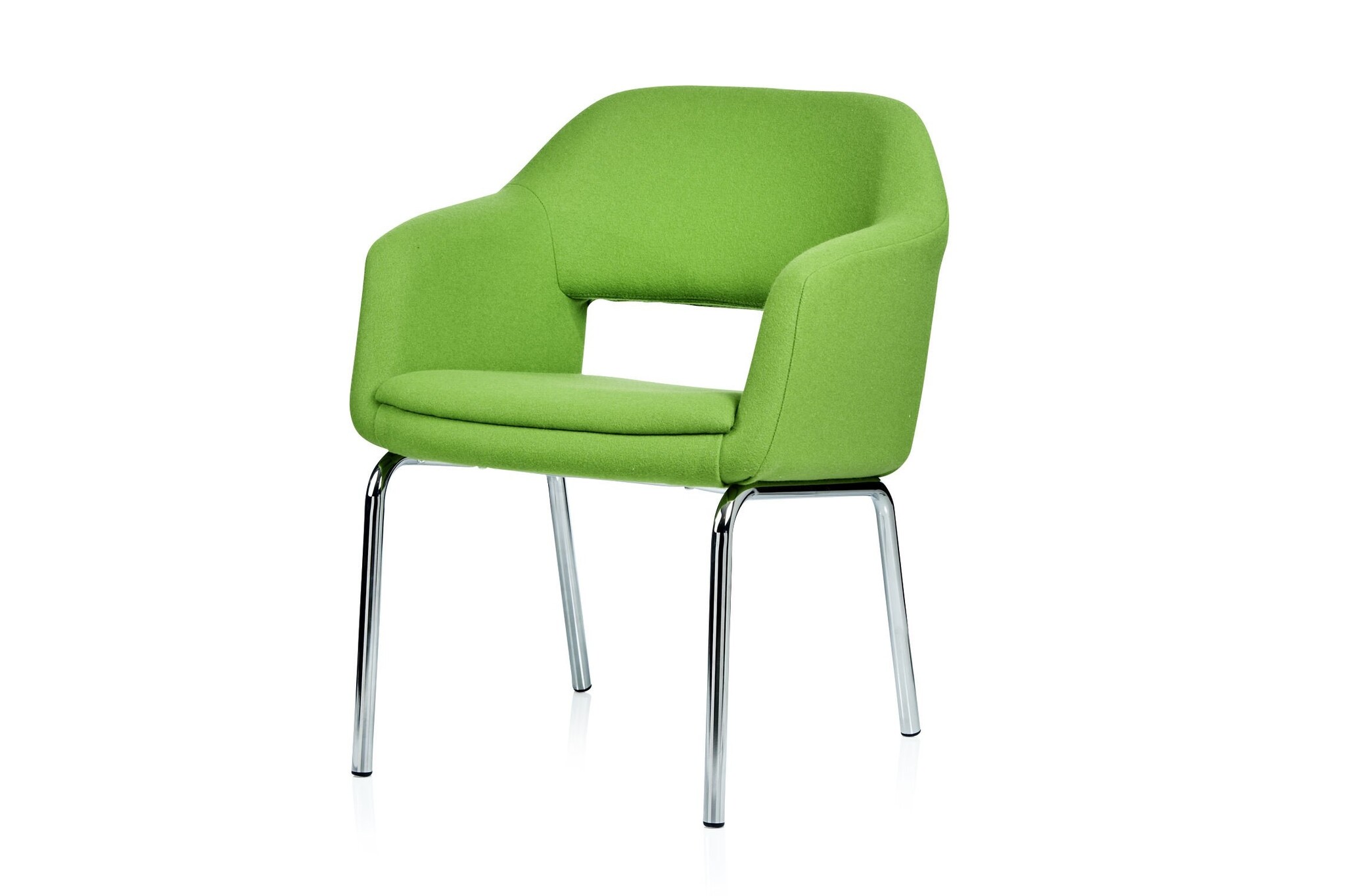 Het frame is van chroom Satin (Satin is alleen als special mogelijk) en leverbaar in meer dan 200 RAL kleuren en de stoel is te bekleden in 160 verschillende stoffen.