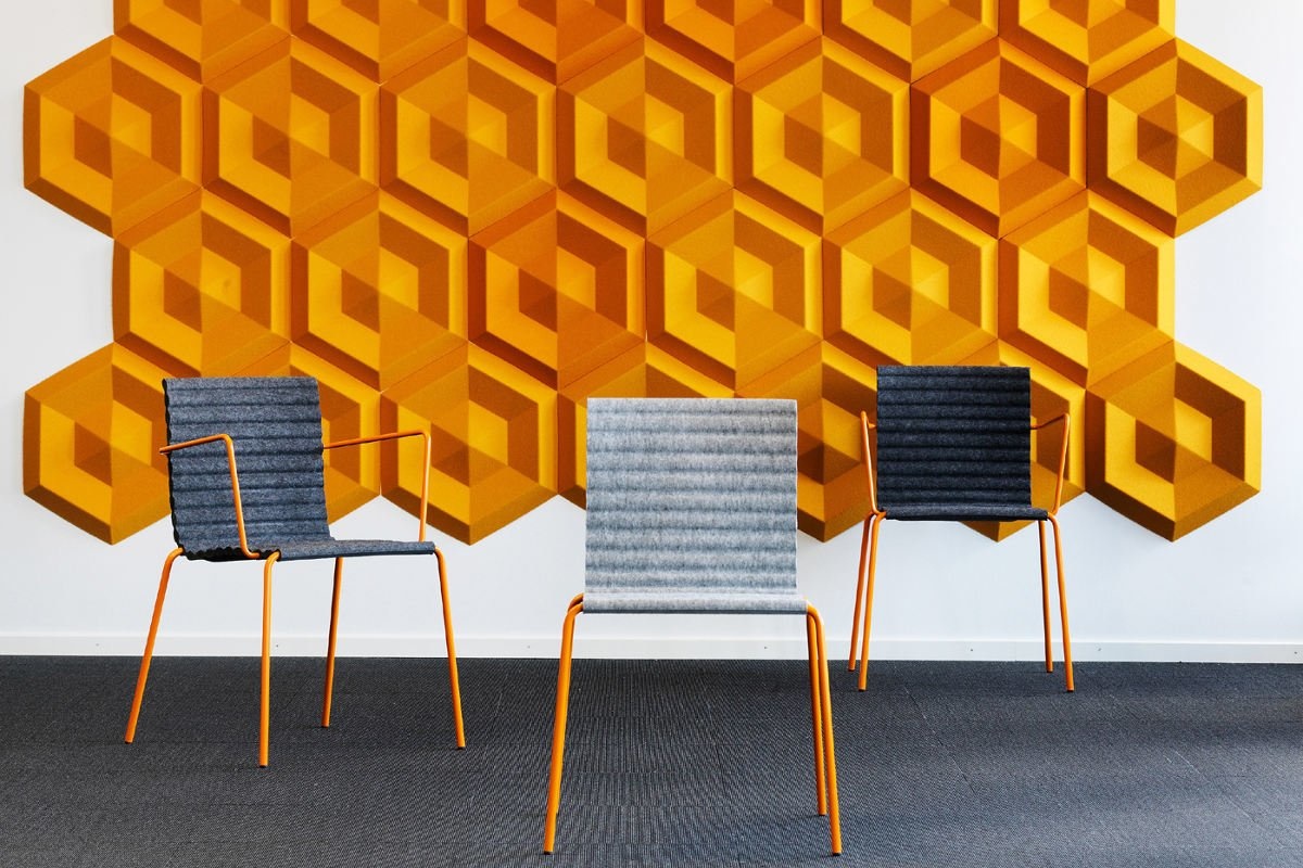 De zitting van vilt van deze stoel is ook te bekleden met stof voor extra comfortabel zitten.