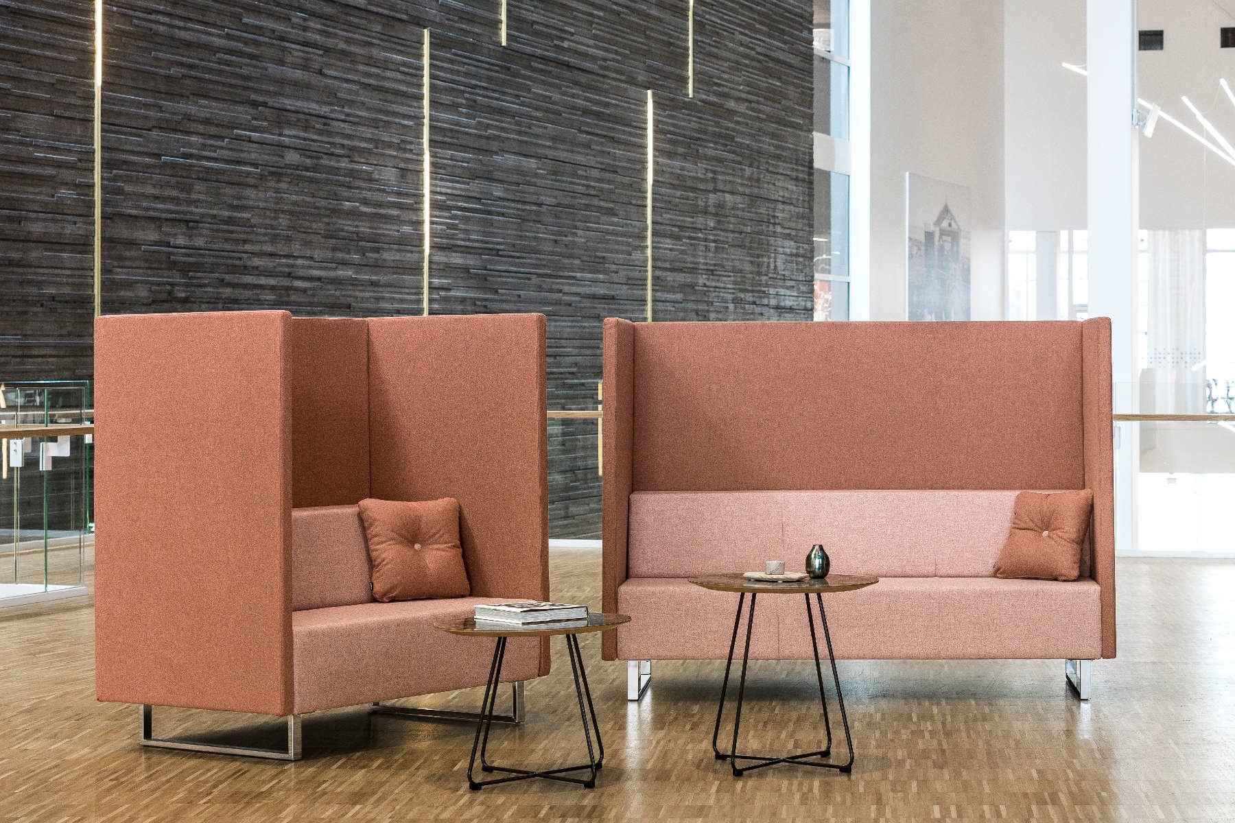 Johanson U-Sit Screen maakt het mogelijk om van de bestaande U-sit bank een akoestische bank te maken door middel van deze hoge screens. Te combineren met alle Johanson U-sit modules met achterkant, met uitzondering van U-75/76, U-85/86. In een lobby of entree zien we steeds vaker akoestische banken die het mogelijk maakt om ongestoord plaats te nemen. Ook op de werkvloer worden dit soort banken ingezet om kort te overleggen. Vanwege de akoestische hoge schermen geeft dit geen overlast voor de andere collega’s.