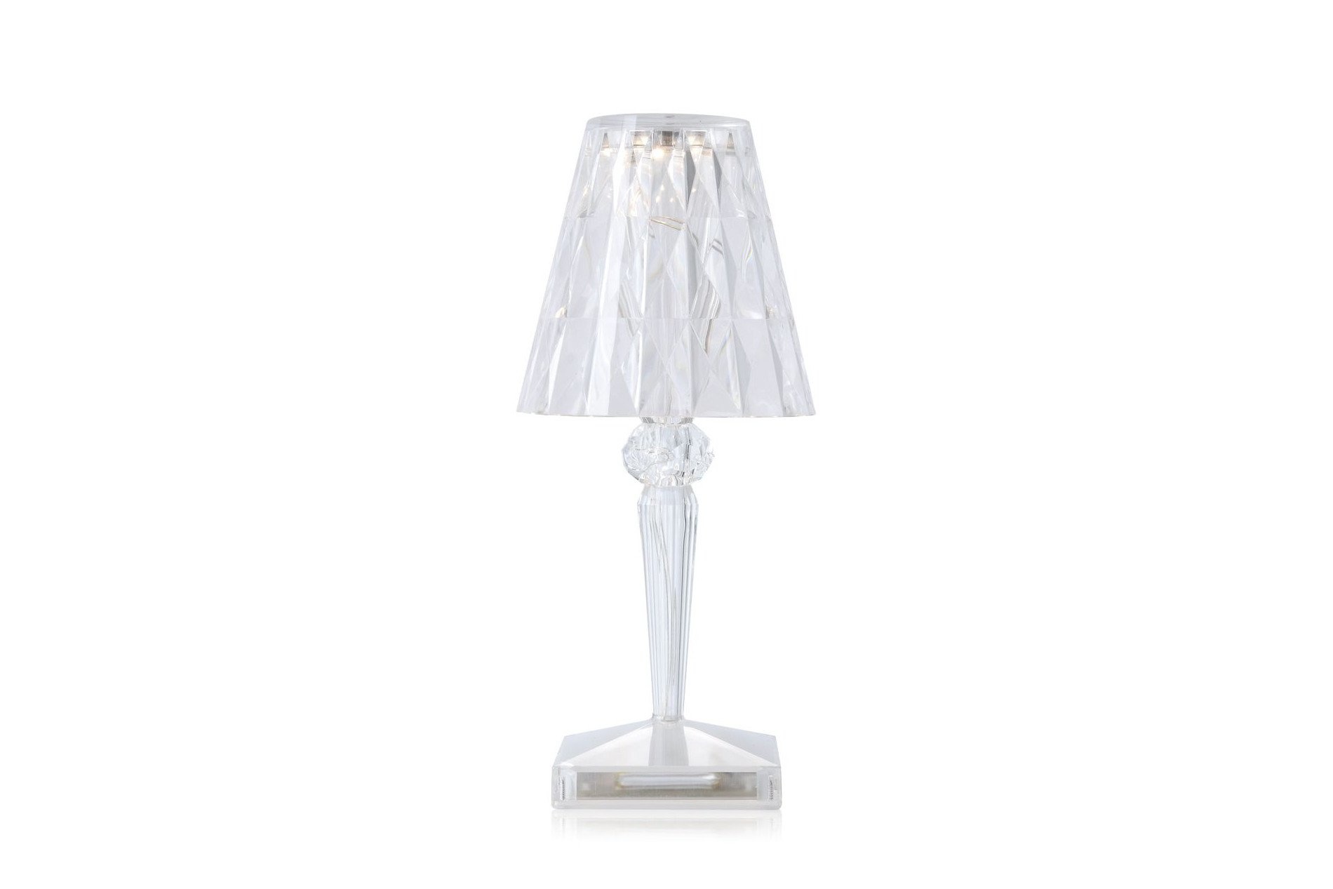De Kartell Battery is een compacte tafellamp die innovatief wordt gekenmerkt door het feit dat hij 100% oplaadbaar is dankzij een eenvoudige elektrische stekker. Hij heeft een batterijduur tot acht uur. Bovendien is de lamp gemaakt van PMMA (plexiglas) en kan deze buiten gebruikt worden. Tot slot is de tafellamp (eenmaal opgeladen en losgekoppeld van het snoer) gemakkelijk te verplaatsen. Hierdoor kunt u de Kartell Battery lamp op vele plaatsen neerzetten waar er op dat moment behoefte is aan een lichtbron, zowel binnen als buiten. Kenmerken Kartell Battery