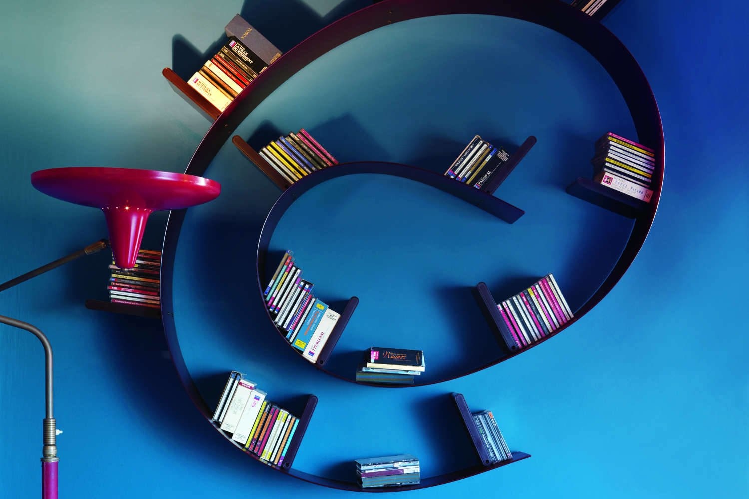 Golvend stevige boekenrek voor een unieke manier van het opbrengen van boeken.