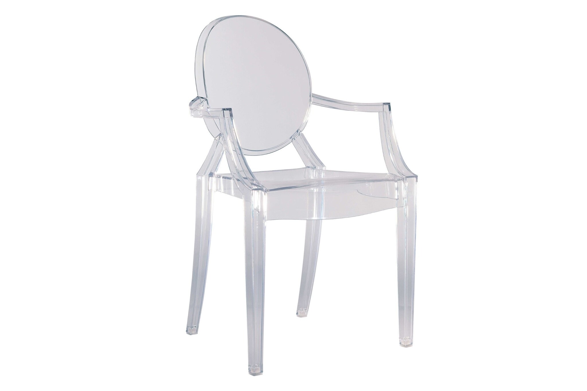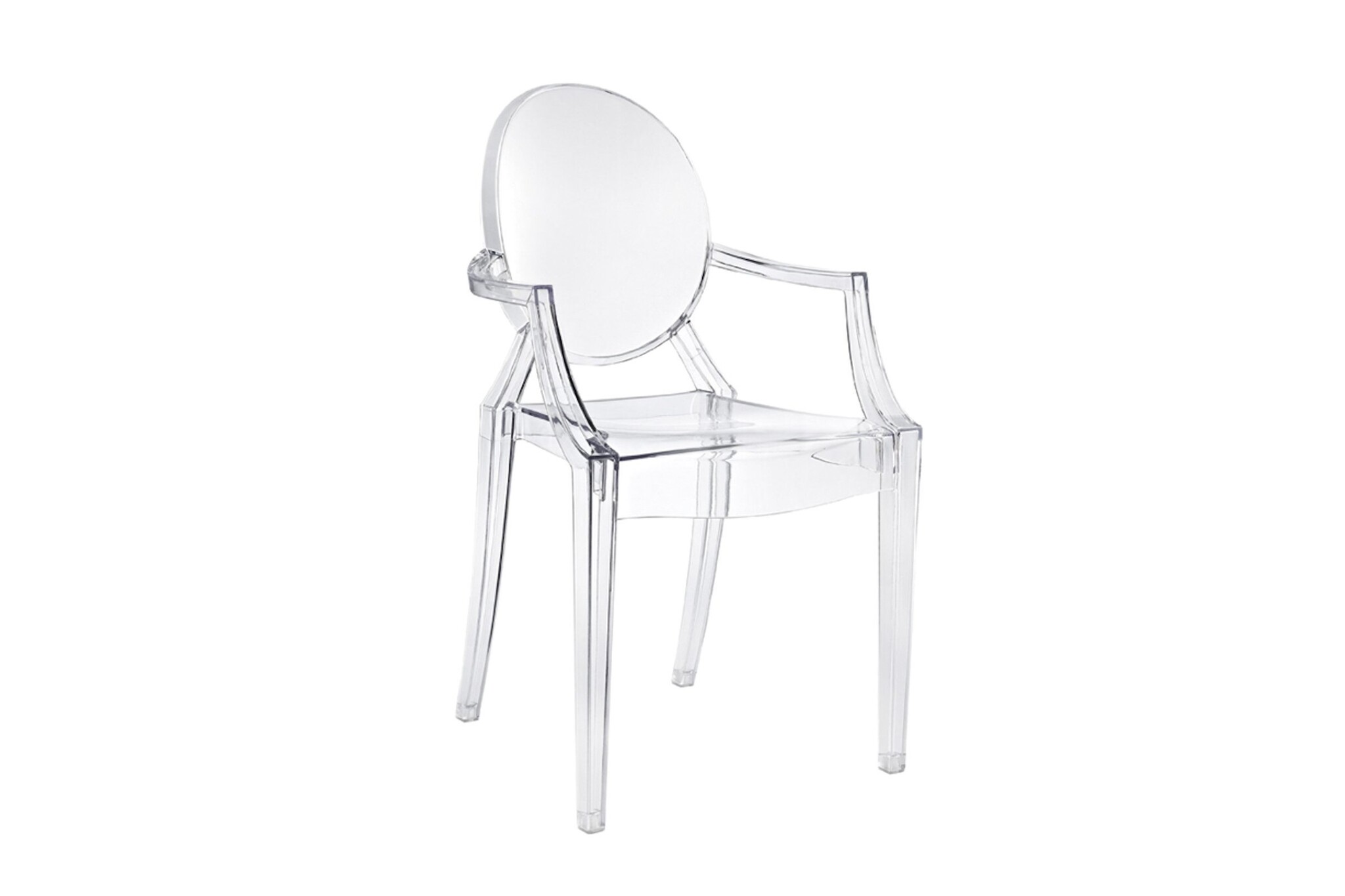 De Kartel Louis Ghost ofwel; de spookstoel genoemd, is een comfortabele stoel. Deze leunstoel in doorzichtig en kleurrijk polycarbonaat uit het Louis XV-design: het voorbeeld van de geherwaardeerde barok dat verbaast, raakt en fascineert. Louis Ghost van Kartell is ontworpen door Philippe Starck en is een gedurfd voorbeeld van het spuitgieten van polycarbonaat in een unieke vorm. Stapelbaar en op maat te maken