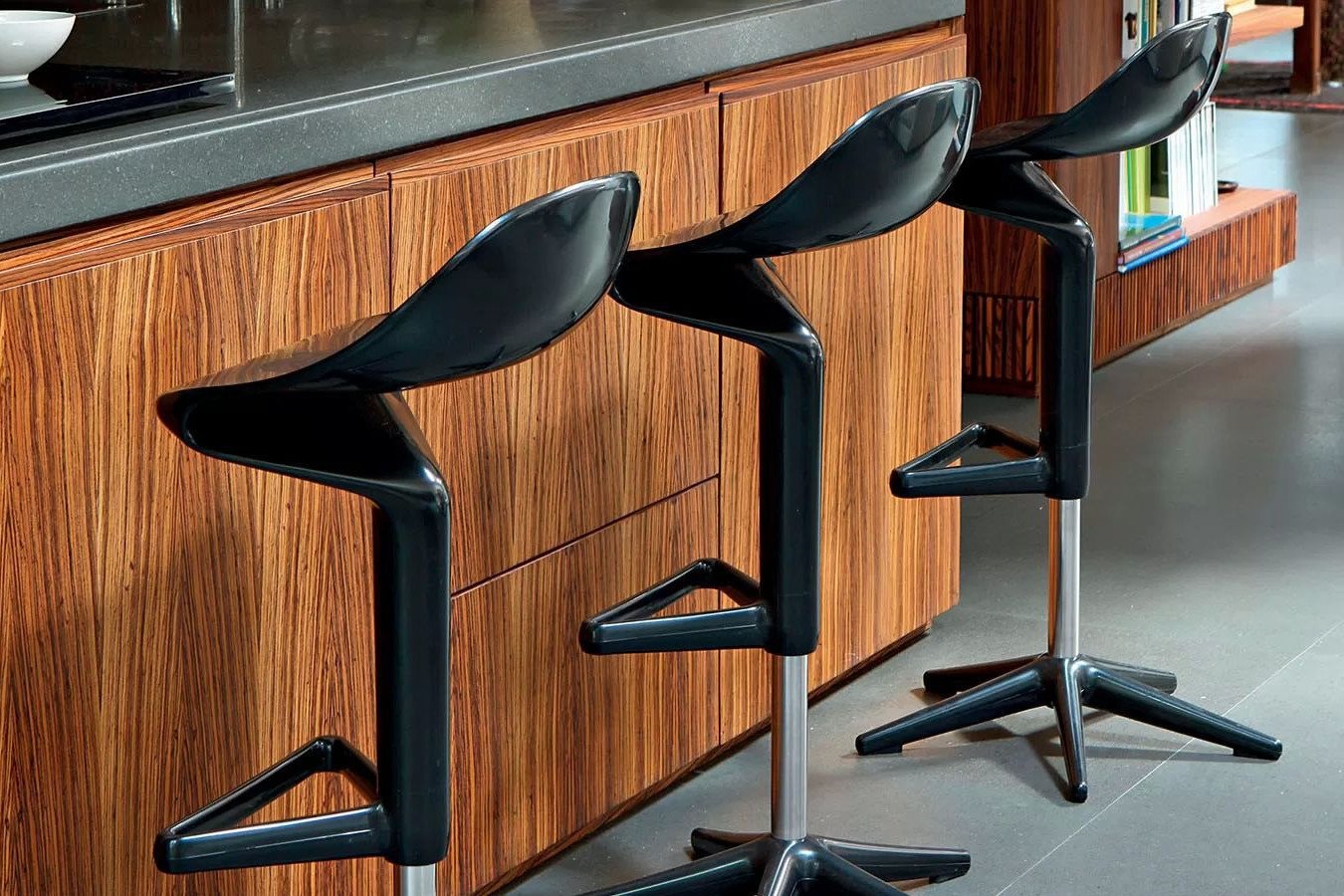 Kartell Spoon kruk is een unieke kruk uit de Spoon familie. Het uiterlijk van deze originele kruk geeft een elastische indruk. De bevestiging van de kruk op het onderstel onderscheid zich vanwege de centrale ondersteuning. Daarnaast bevat de kruk een gasliftpomp waardoor de stoel in hoogte verstelbaar is. Voetensteun