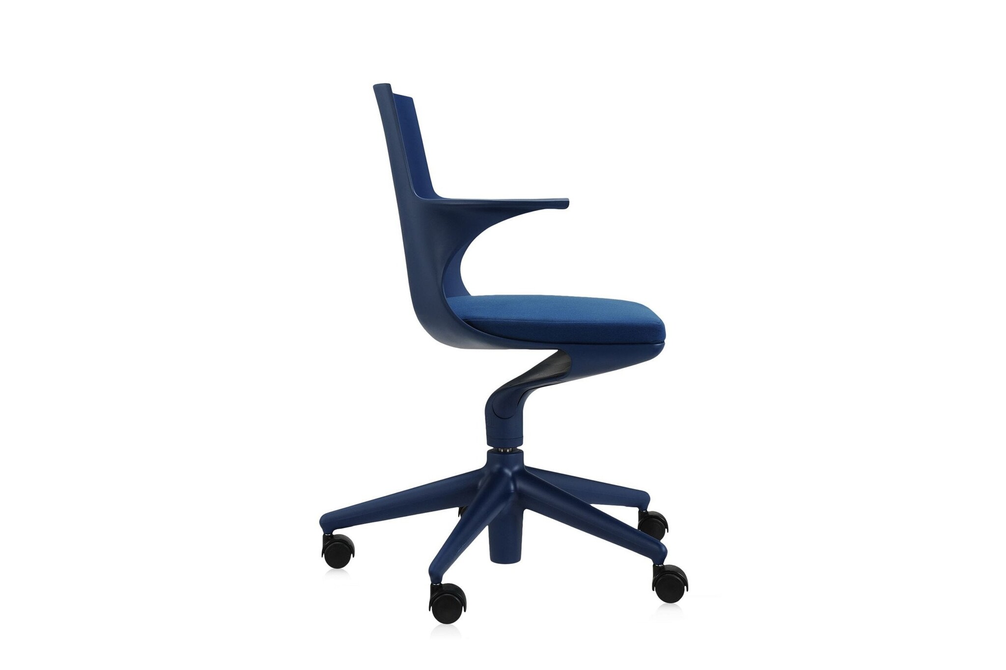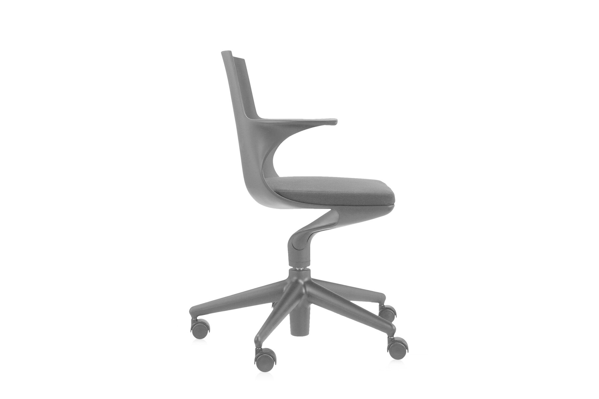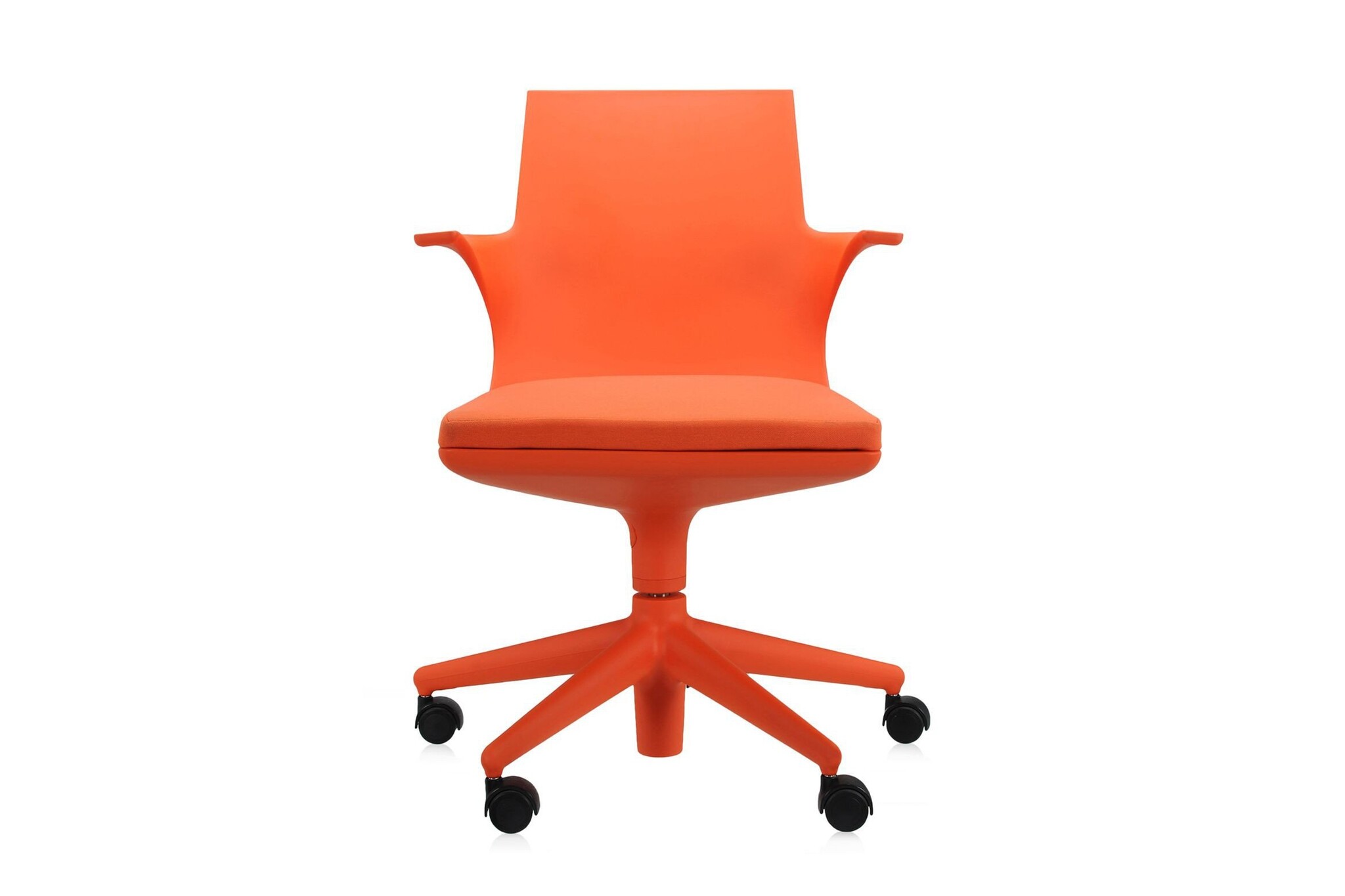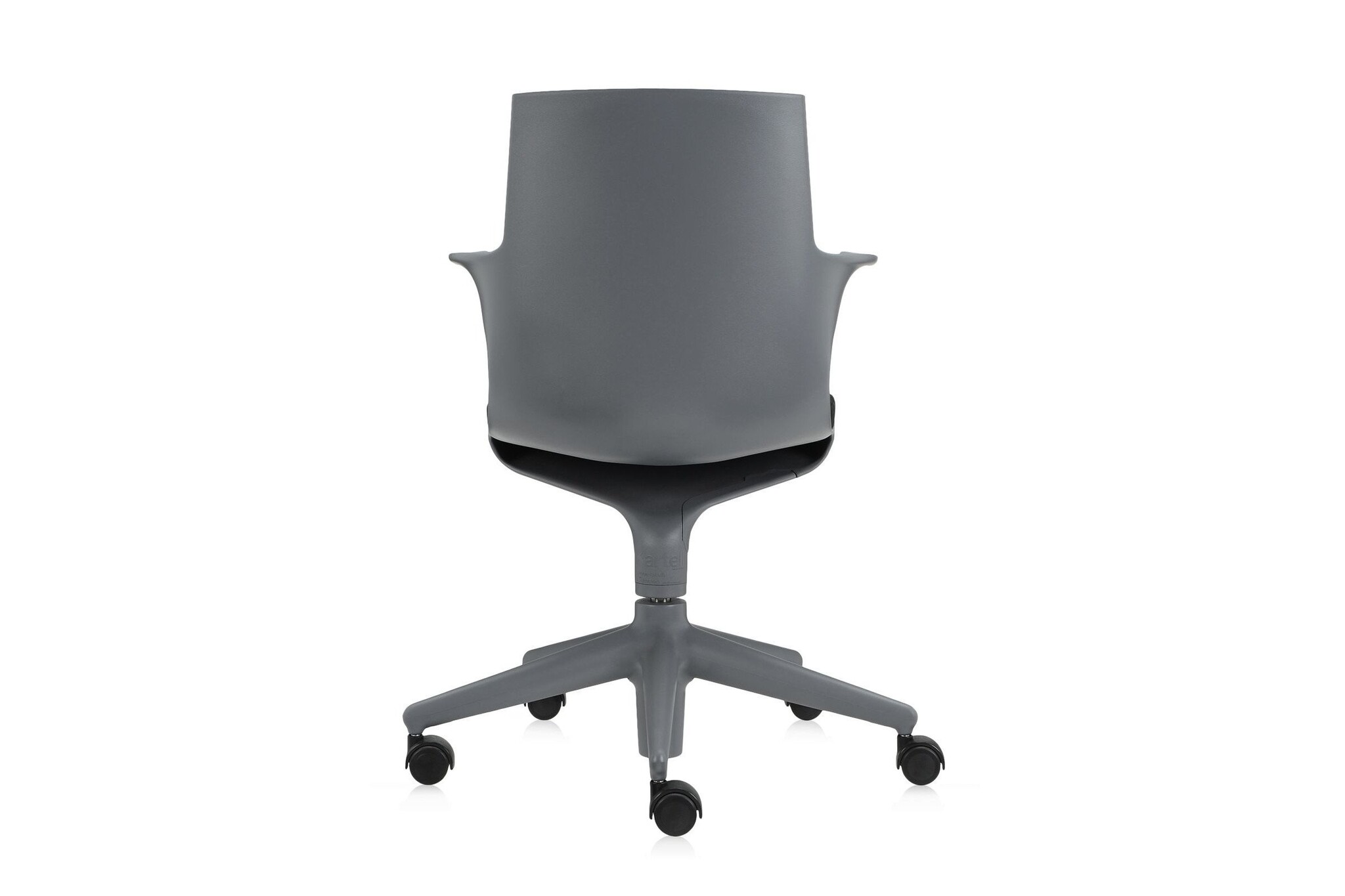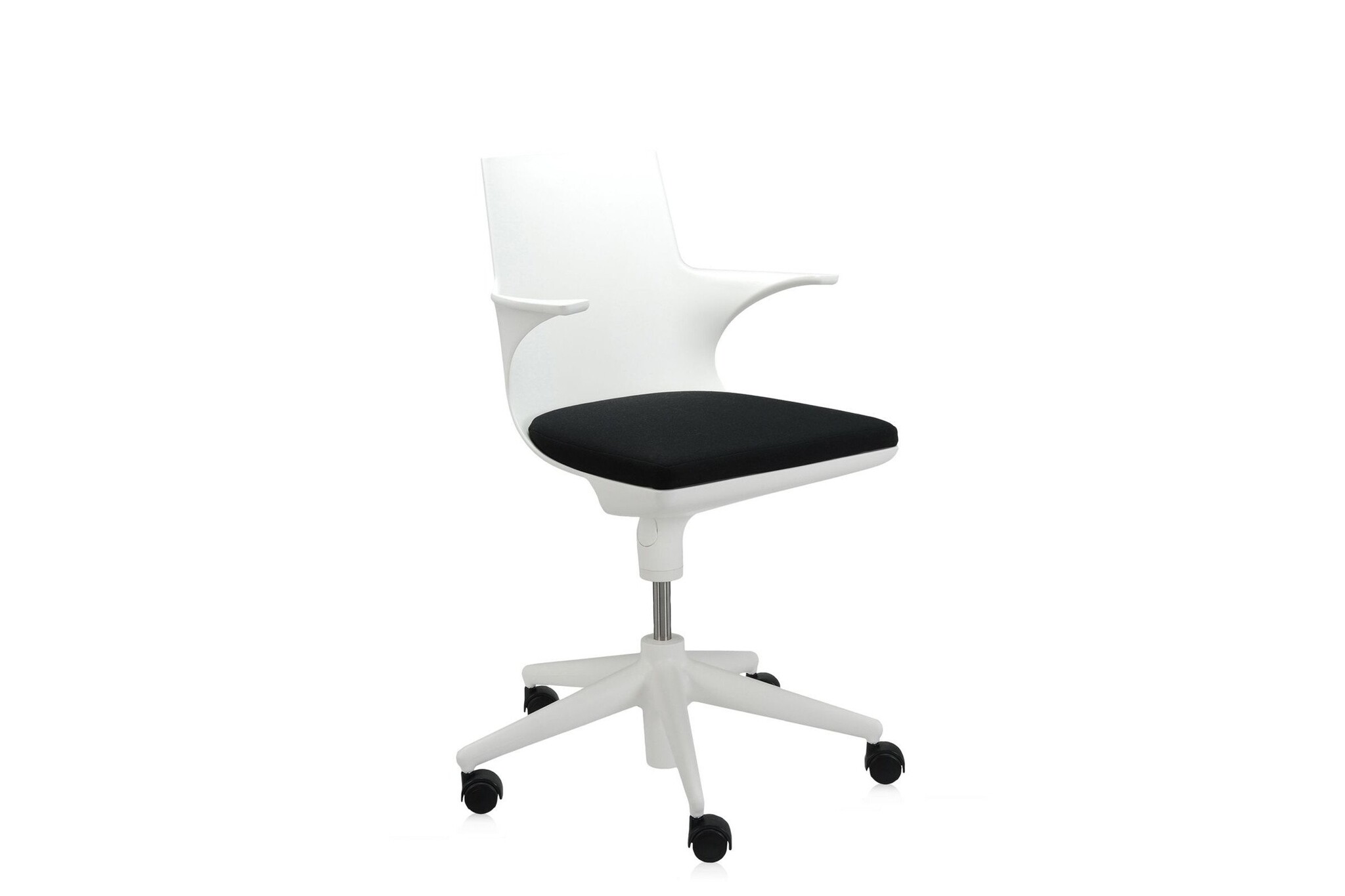 Kartell Spoon Stoel is de bureaustoel uit de Spoon familie. Deze stoel is dan ook speciaal ontworpen voor het al dan niet tijdelijk gebruik op werkplekken. De Spoon stoel is gerealiseerd met de meest geavanceerde technologische functies. Daarnaast kan de stoel naar elk gewicht van de gebruiker worden aangepast.De Spoon stoel bevat een gebruiksvriendelijke handgreep waarmee de positie van de stoel gemakkelijk kan worden aangepast. Naast zijn flexibiliteit in positie van de gebruiker is de stoel ook wendbaar door de wieltjes onder de stoel.